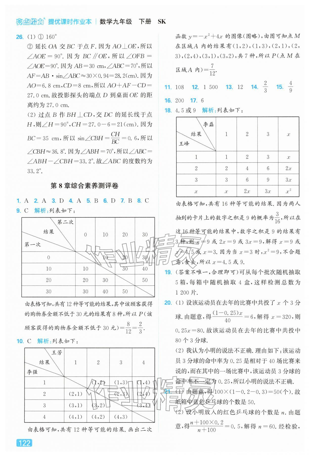 2026年亮点给力提优课时作业本九年级数学下册苏科版第122页