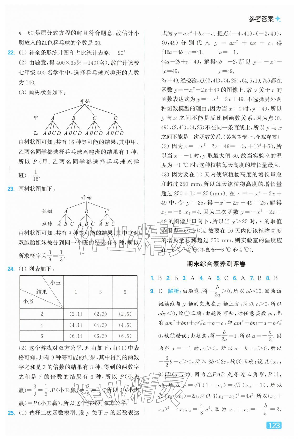 2026年亮点给力提优课时作业本九年级数学下册苏科版第123页