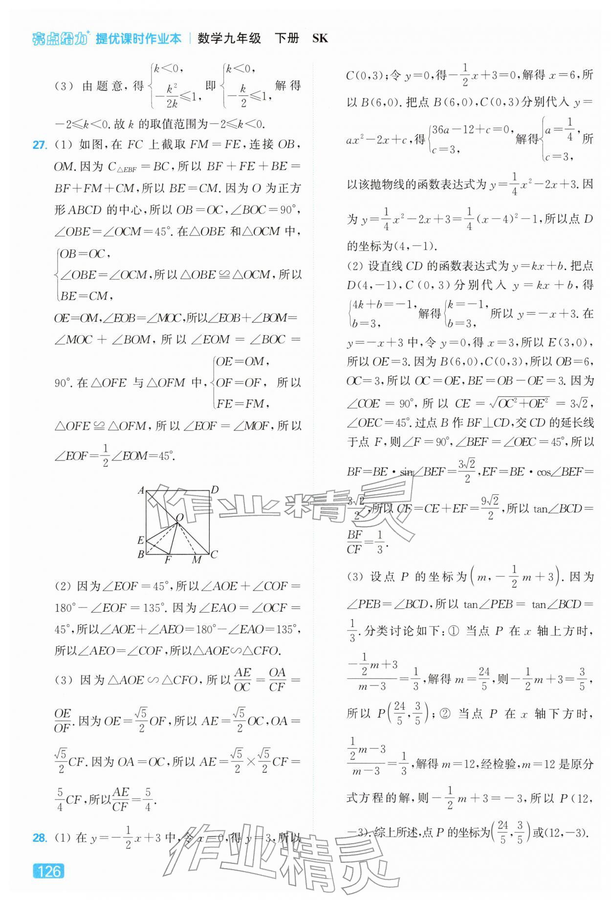 2026年亮点给力提优课时作业本九年级数学下册苏科版第126页