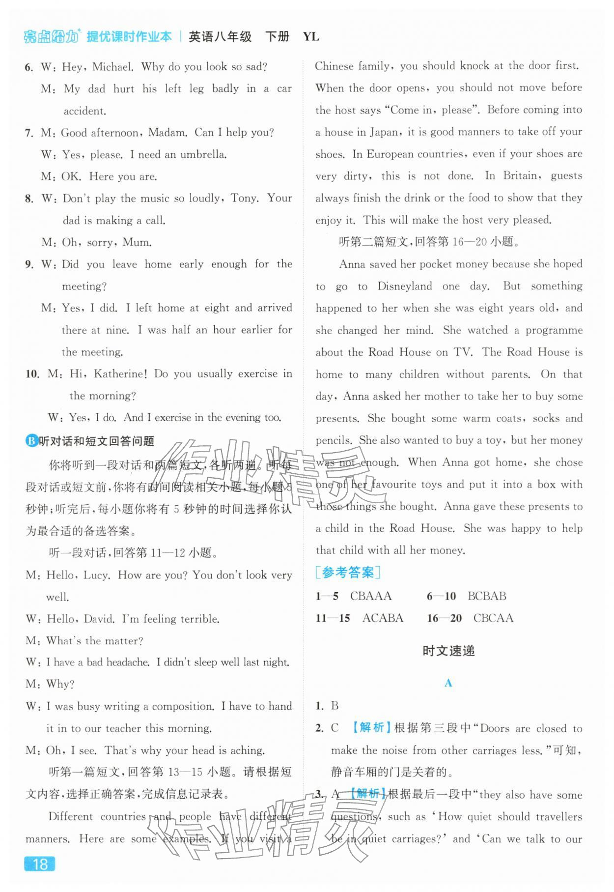 2026年亮点给力提优课时作业本八年级英语下册译林版参考答案第18页