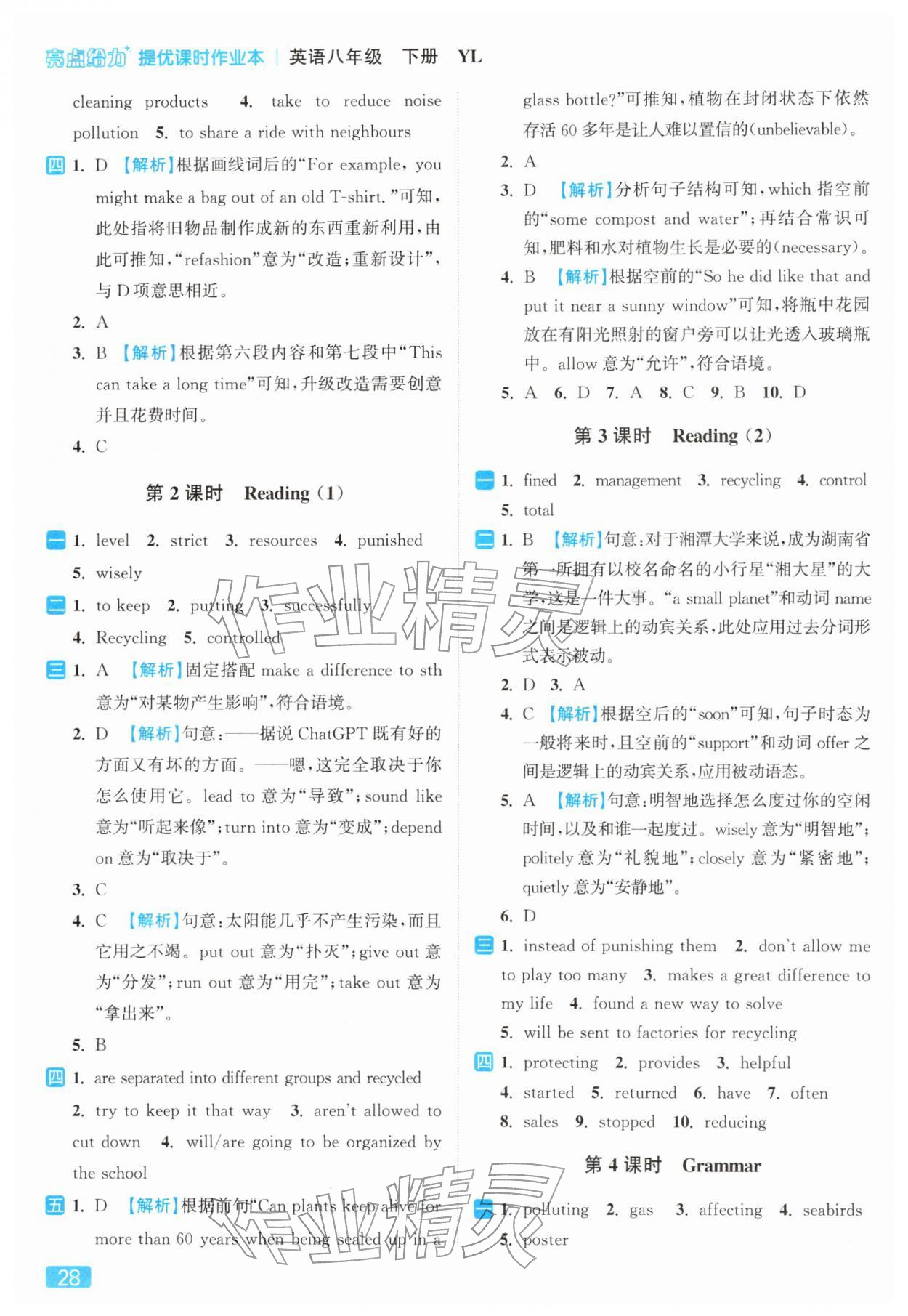 2026年亮点给力提优课时作业本八年级英语下册译林版参考答案第28页
