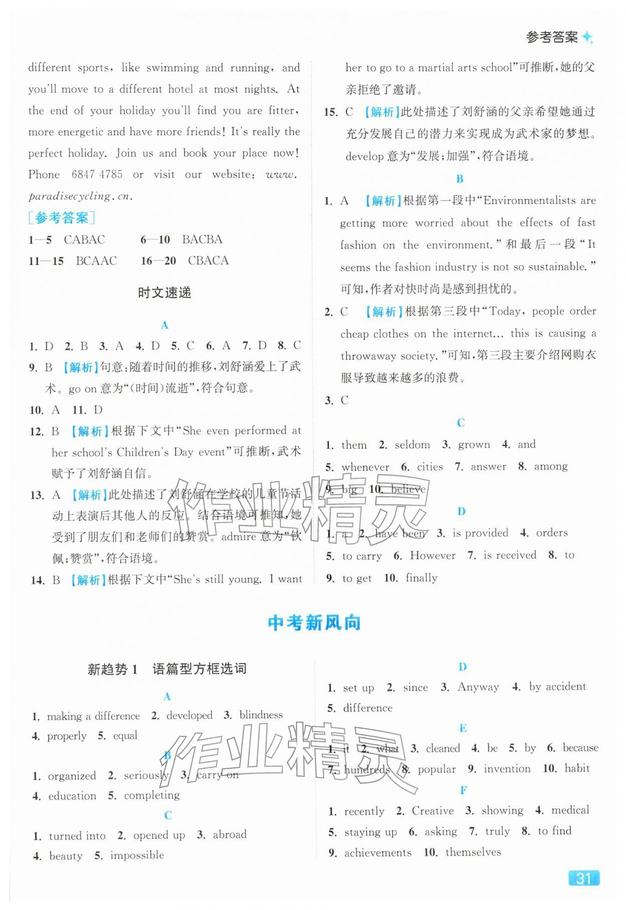 2026年亮点给力提优课时作业本八年级英语下册译林版参考答案第31页