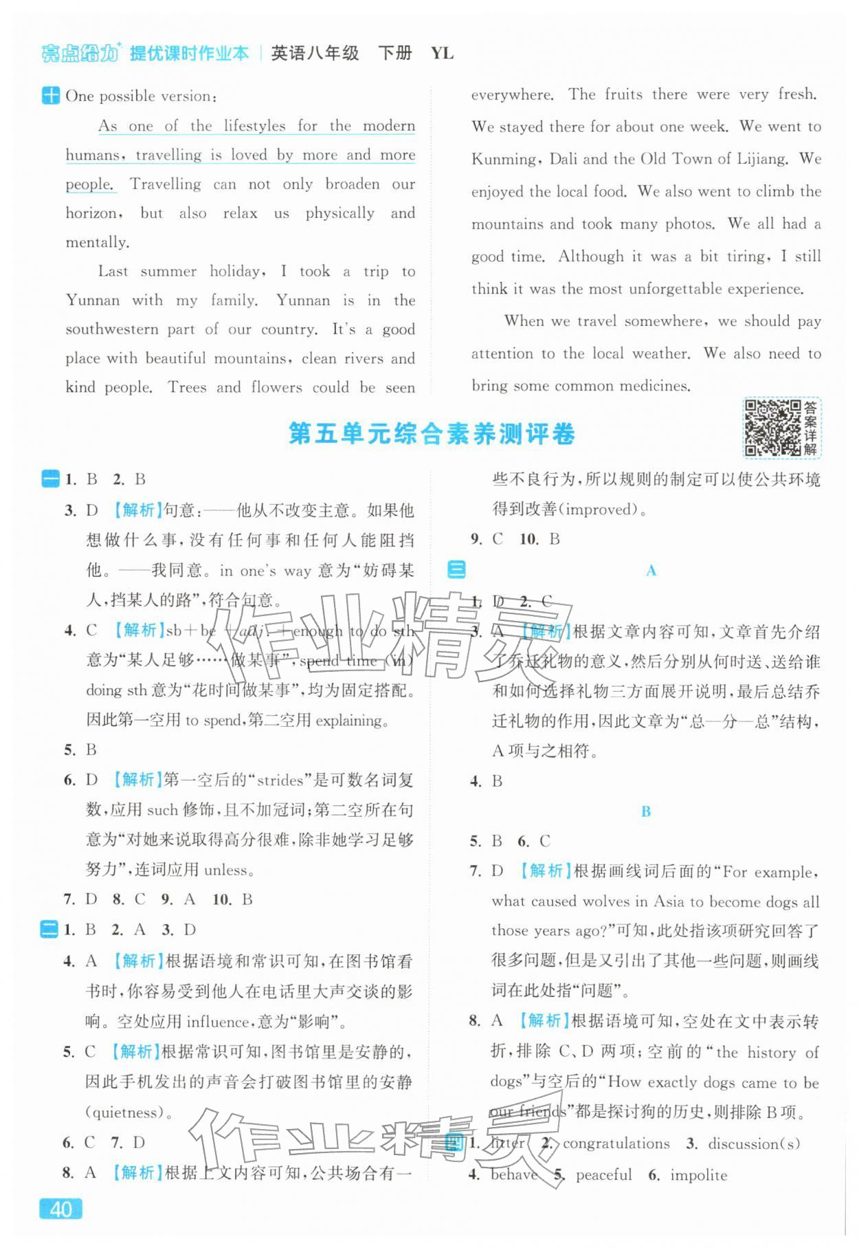 2026年亮点给力提优课时作业本八年级英语下册译林版参考答案第40页
