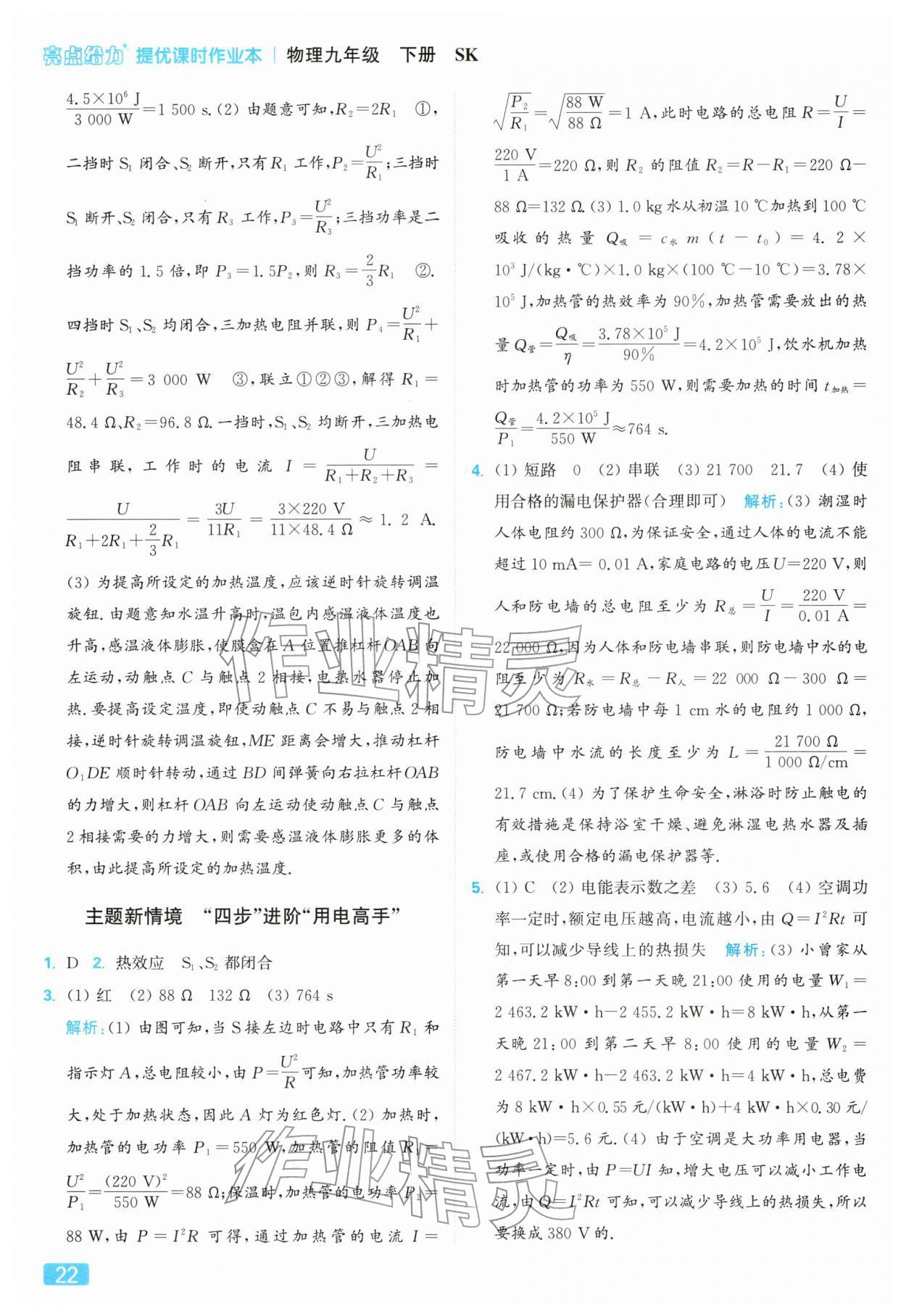 2026年亮点给力提优课时作业本九年级物理下册苏科版参考答案第22页