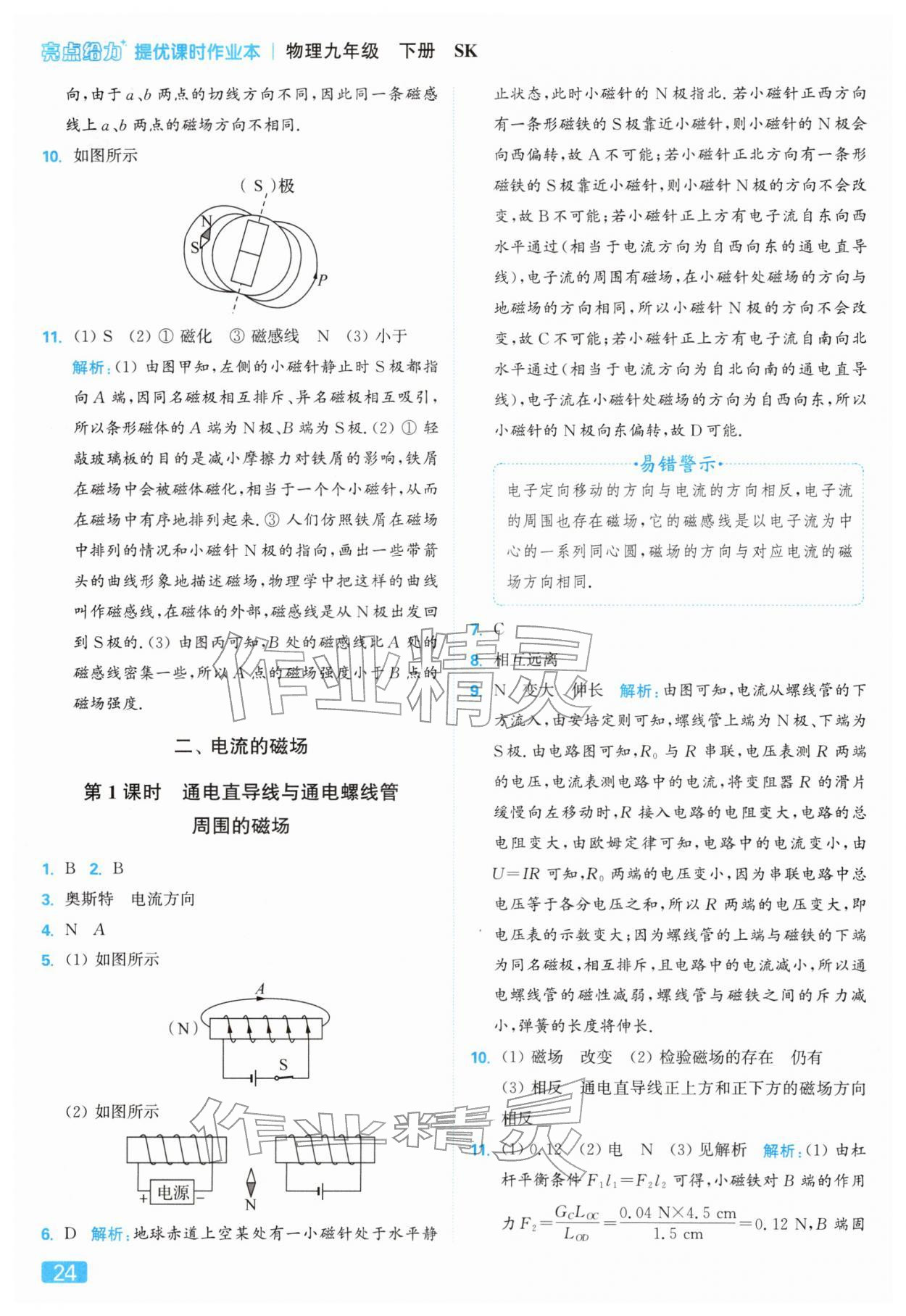 2026年亮点给力提优课时作业本九年级物理下册苏科版参考答案第24页