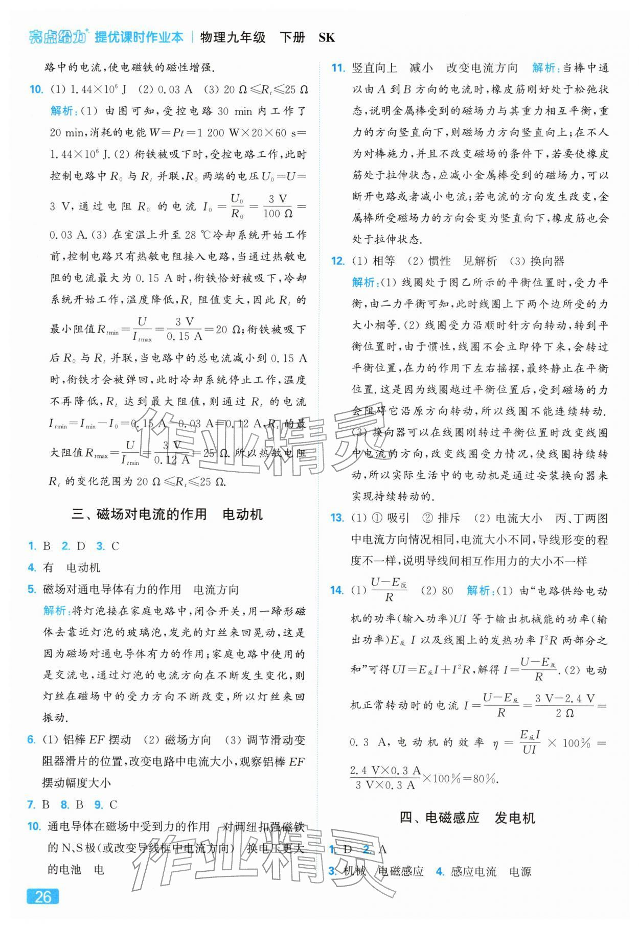 2026年亮点给力提优课时作业本九年级物理下册苏科版参考答案第26页