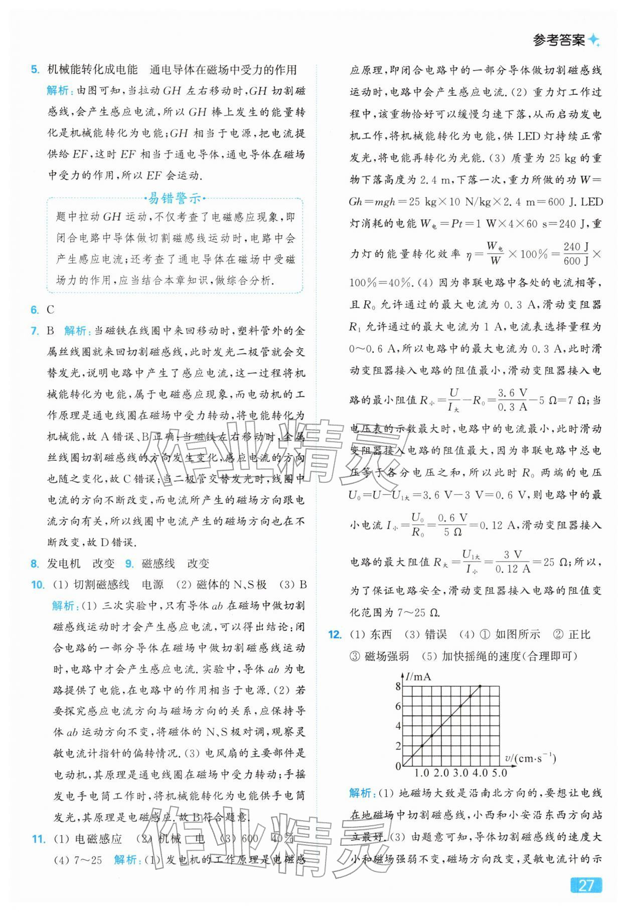 2026年亮点给力提优课时作业本九年级物理下册苏科版参考答案第27页
