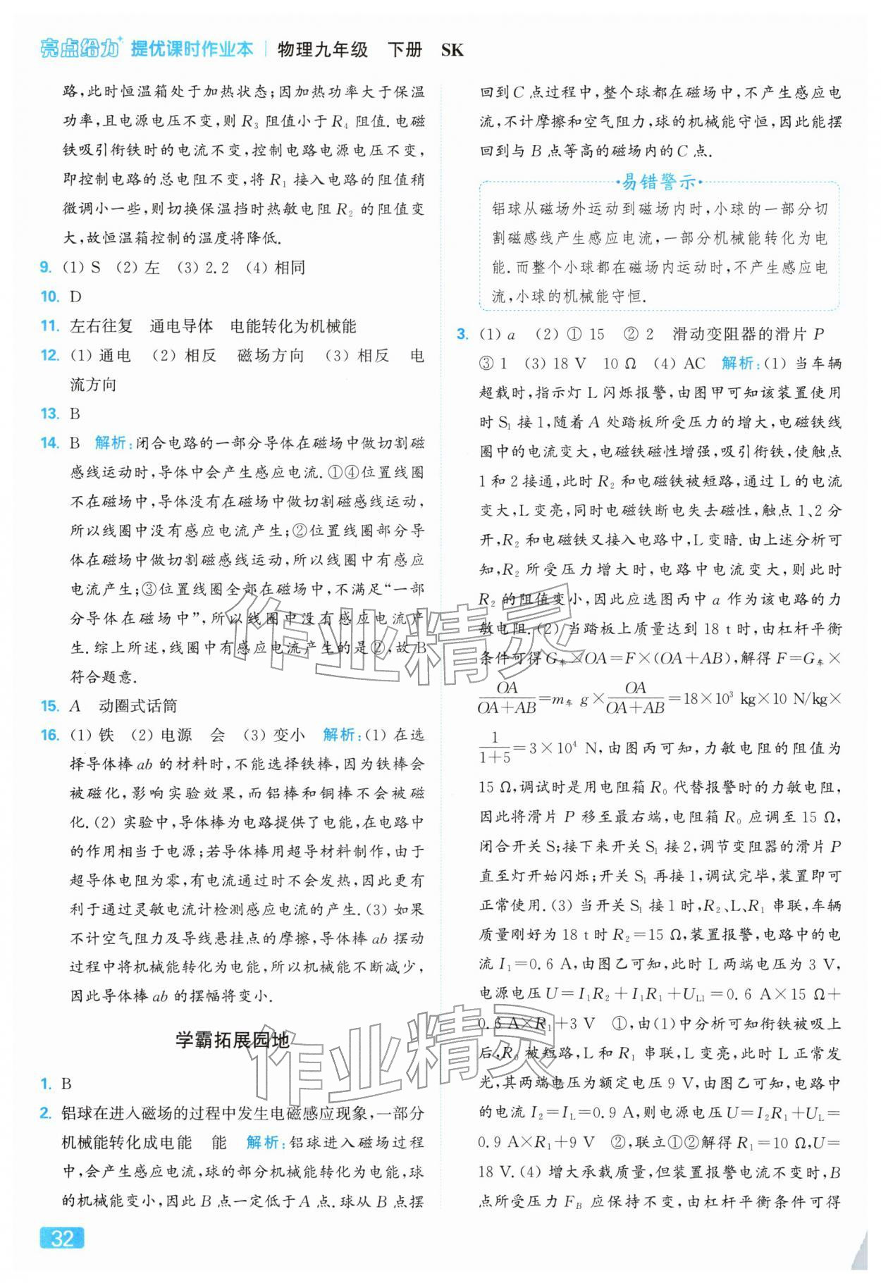 2026年亮点给力提优课时作业本九年级物理下册苏科版参考答案第32页