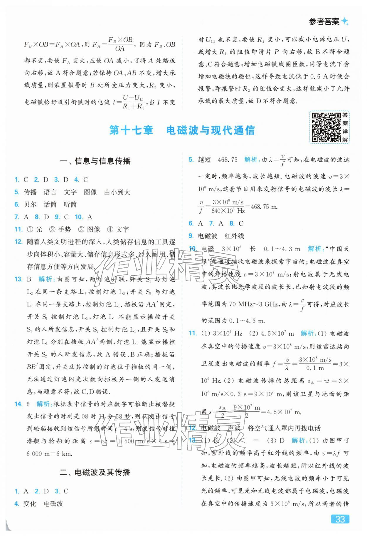 2026年亮点给力提优课时作业本九年级物理下册苏科版参考答案第33页
