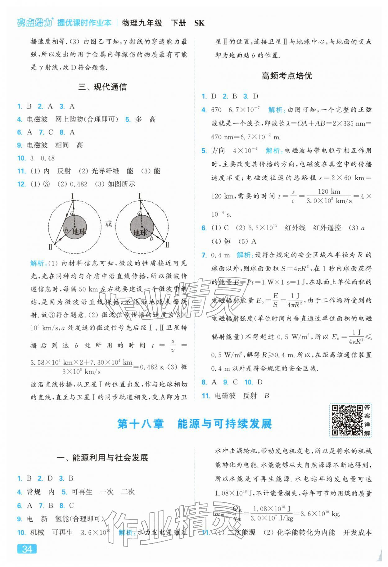 2026年亮点给力提优课时作业本九年级物理下册苏科版参考答案第34页