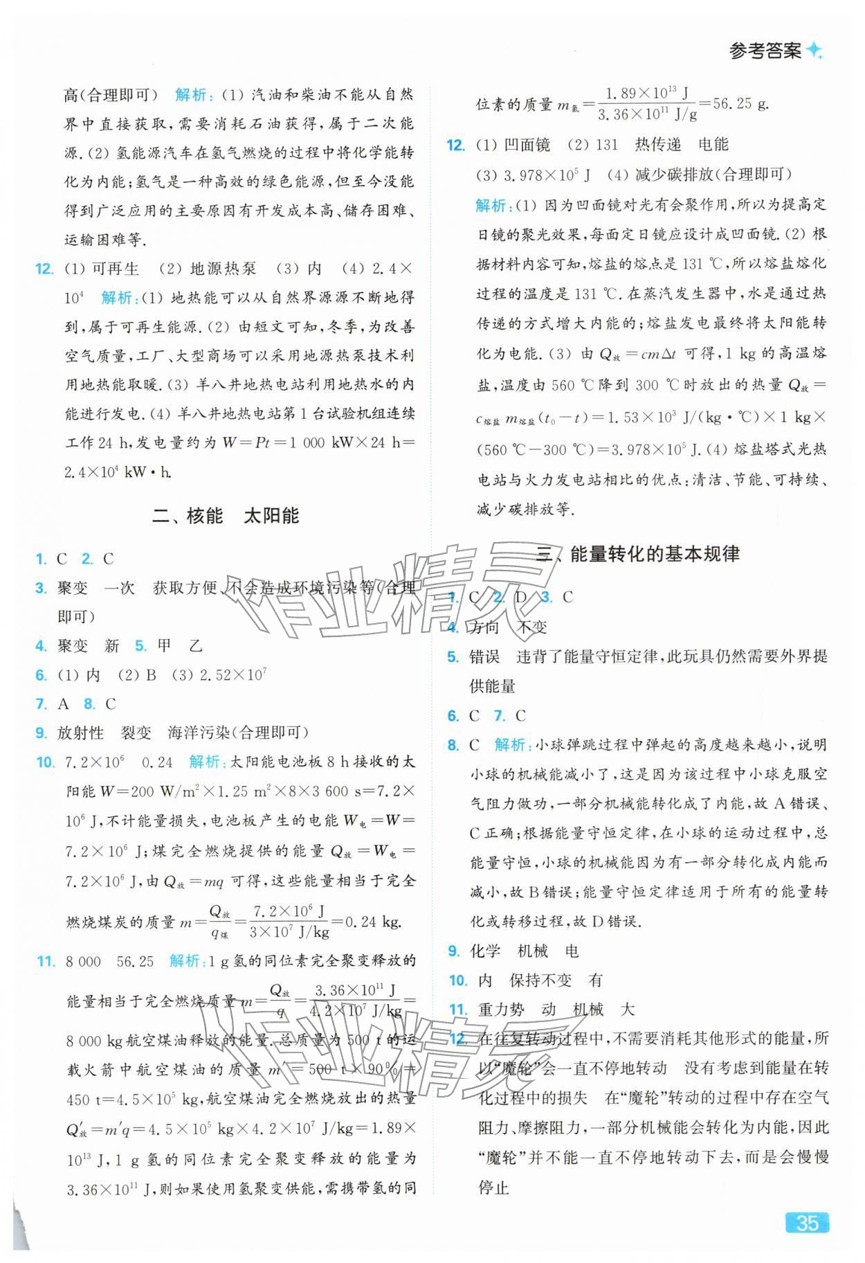 2026年亮点给力提优课时作业本九年级物理下册苏科版参考答案第35页