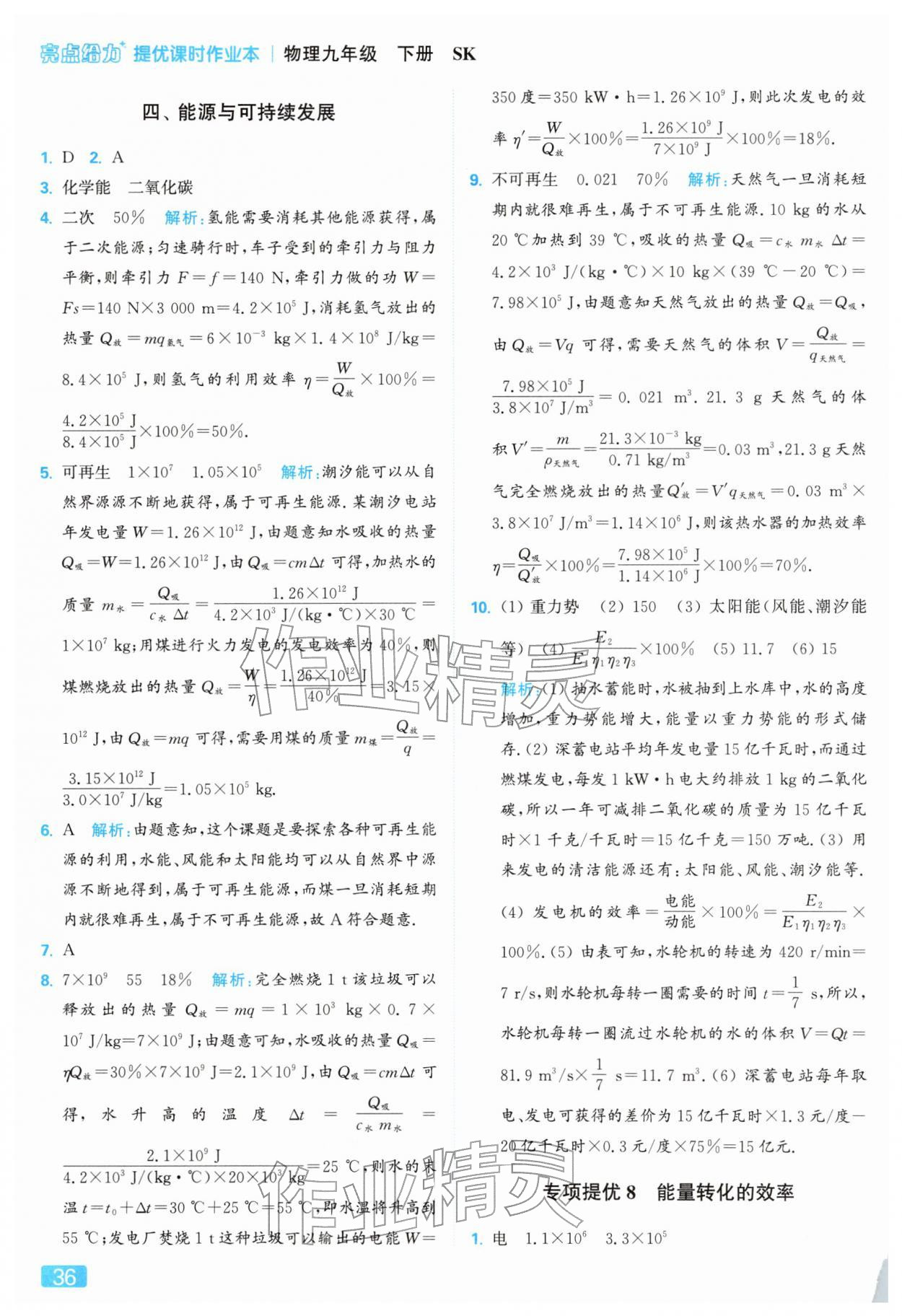 2026年亮点给力提优课时作业本九年级物理下册苏科版参考答案第36页