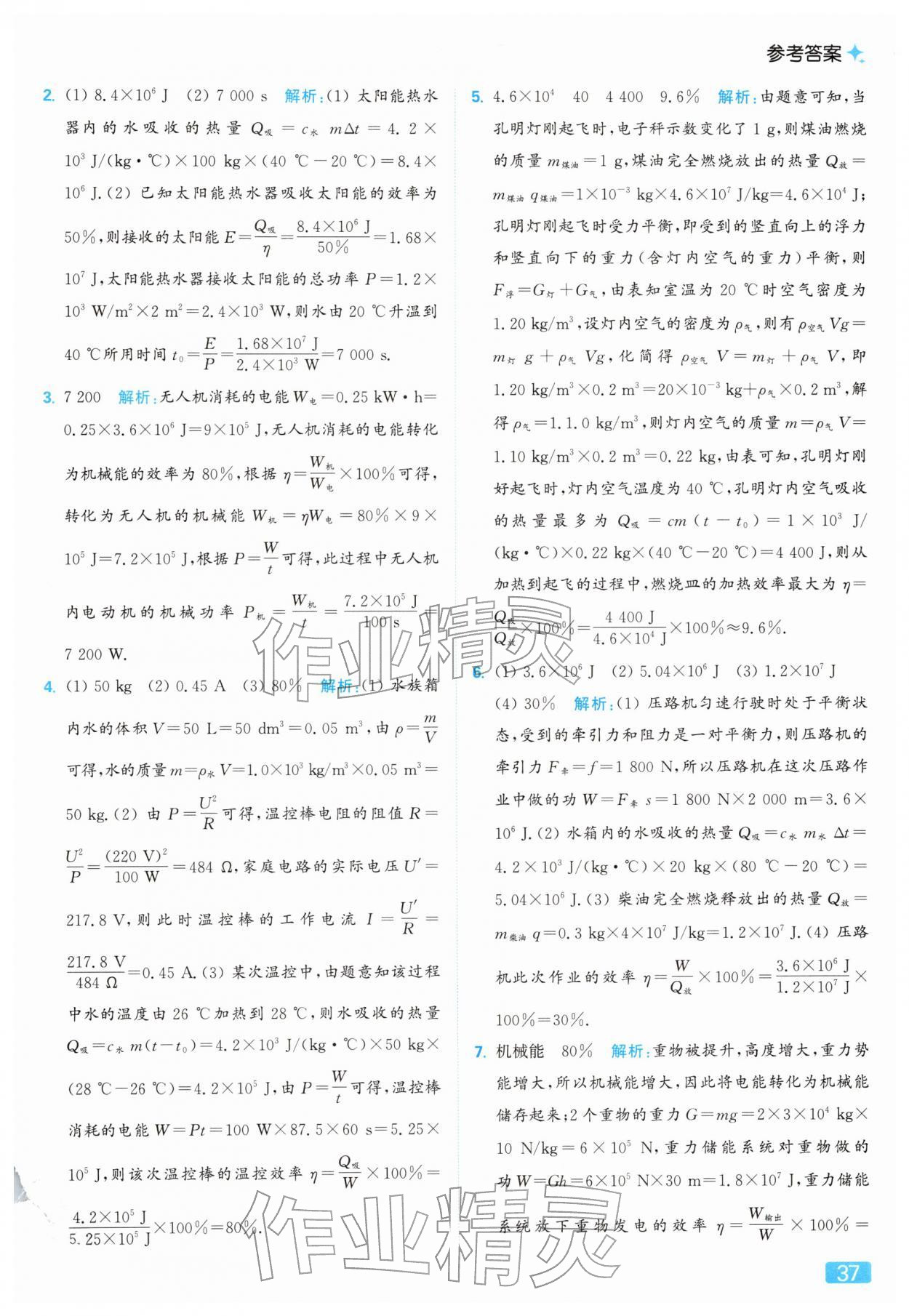2026年亮点给力提优课时作业本九年级物理下册苏科版参考答案第37页