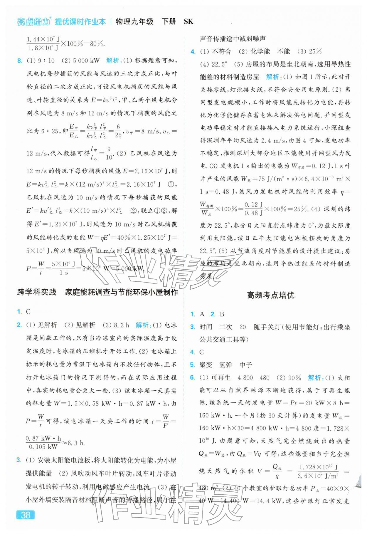2026年亮点给力提优课时作业本九年级物理下册苏科版参考答案第38页