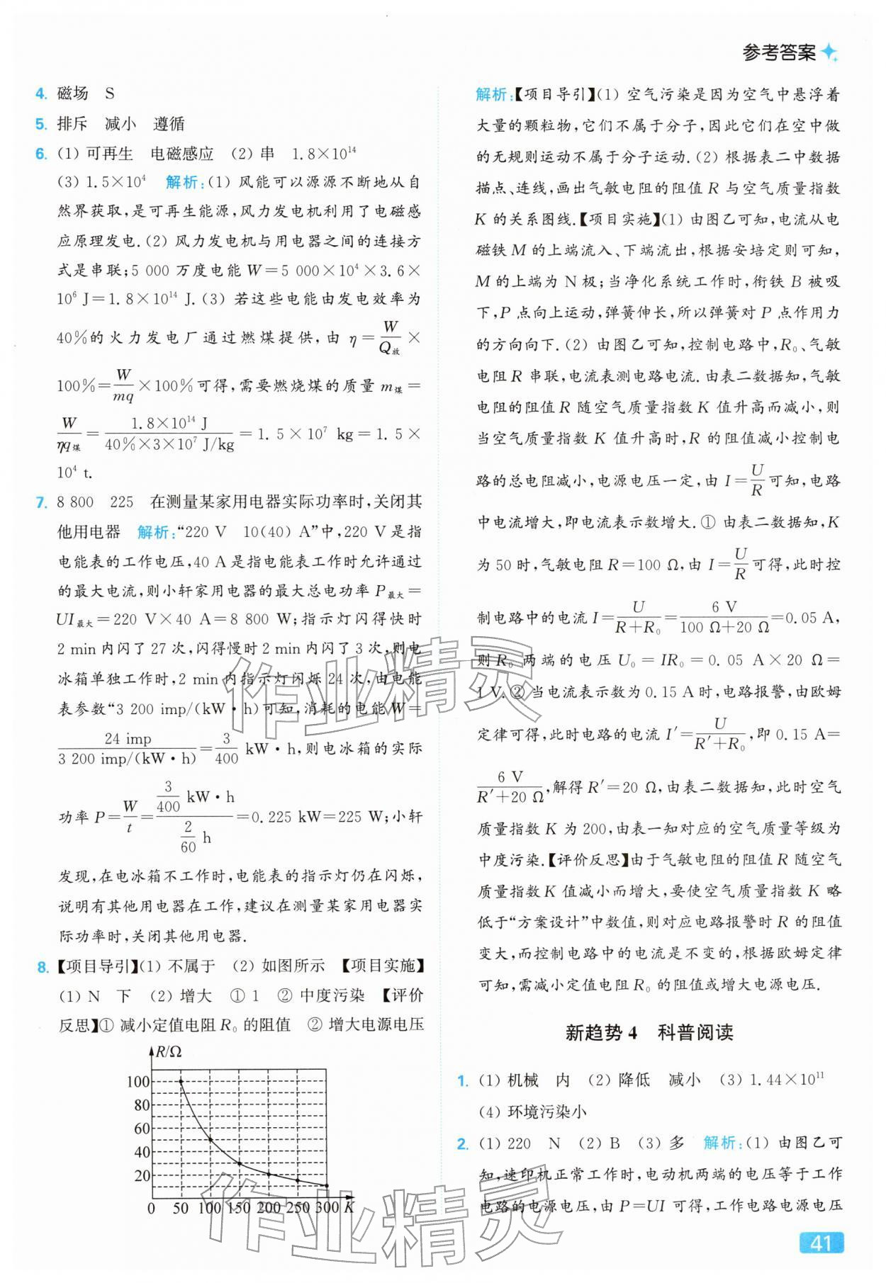 2026年亮点给力提优课时作业本九年级物理下册苏科版参考答案第41页