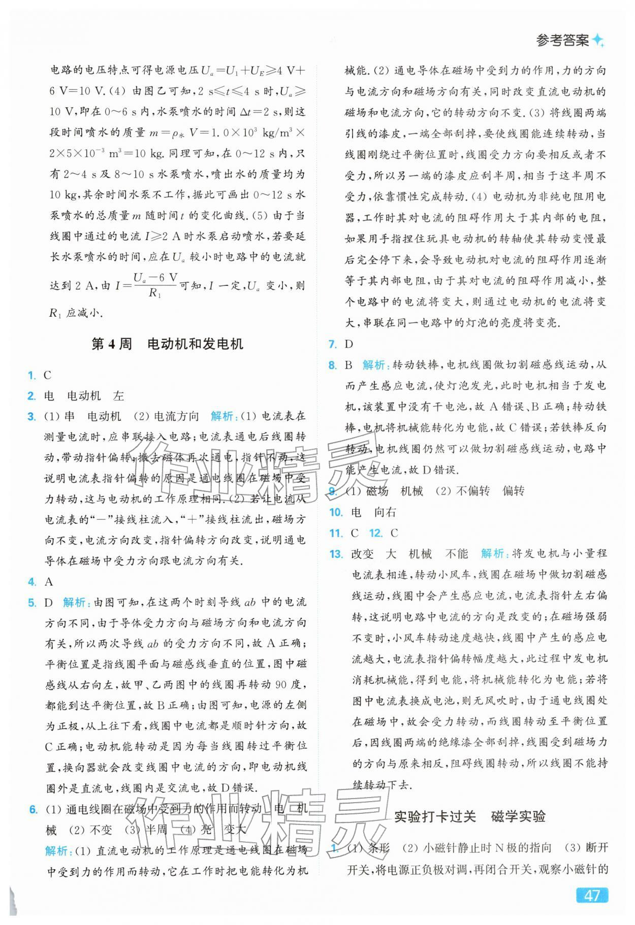 2026年亮点给力提优课时作业本九年级物理下册苏科版参考答案第47页