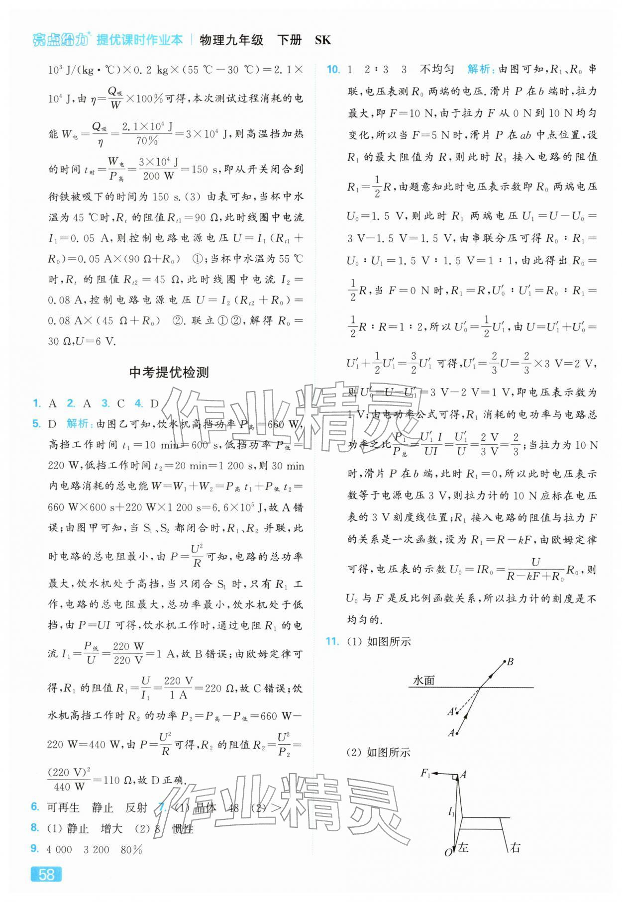 2026年亮点给力提优课时作业本九年级物理下册苏科版参考答案第58页