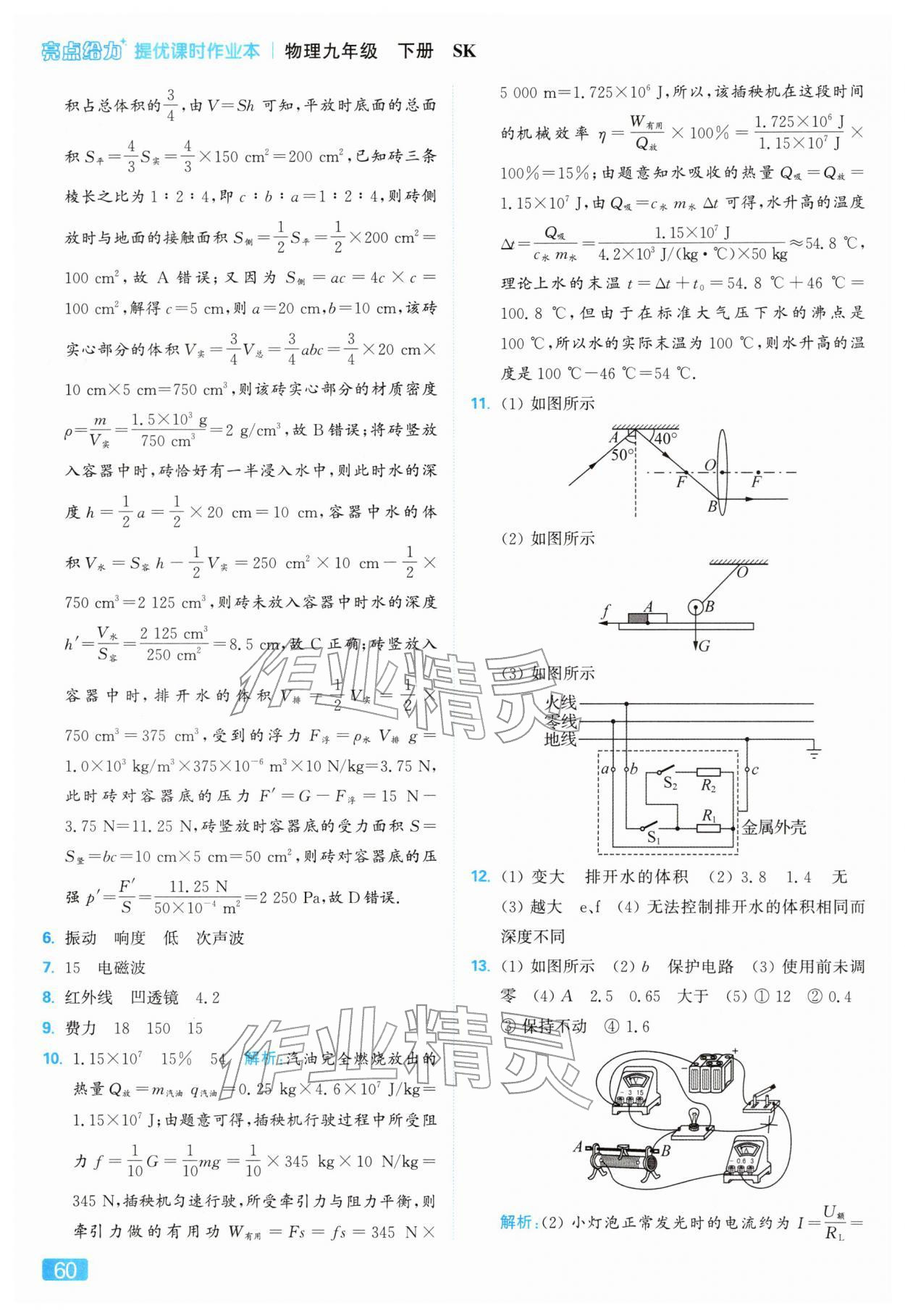 2026年亮点给力提优课时作业本九年级物理下册苏科版参考答案第60页