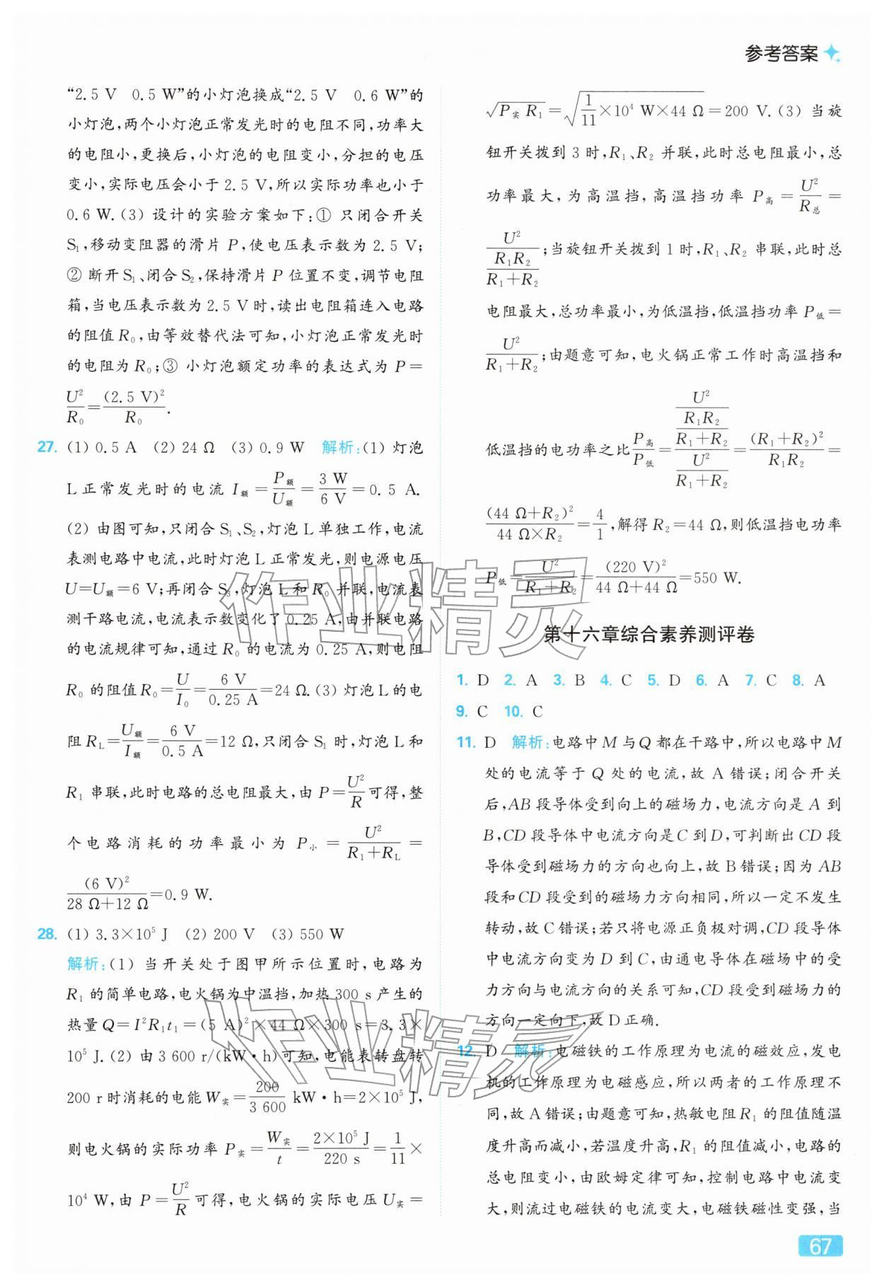 2026年亮点给力提优课时作业本九年级物理下册苏科版参考答案第67页
