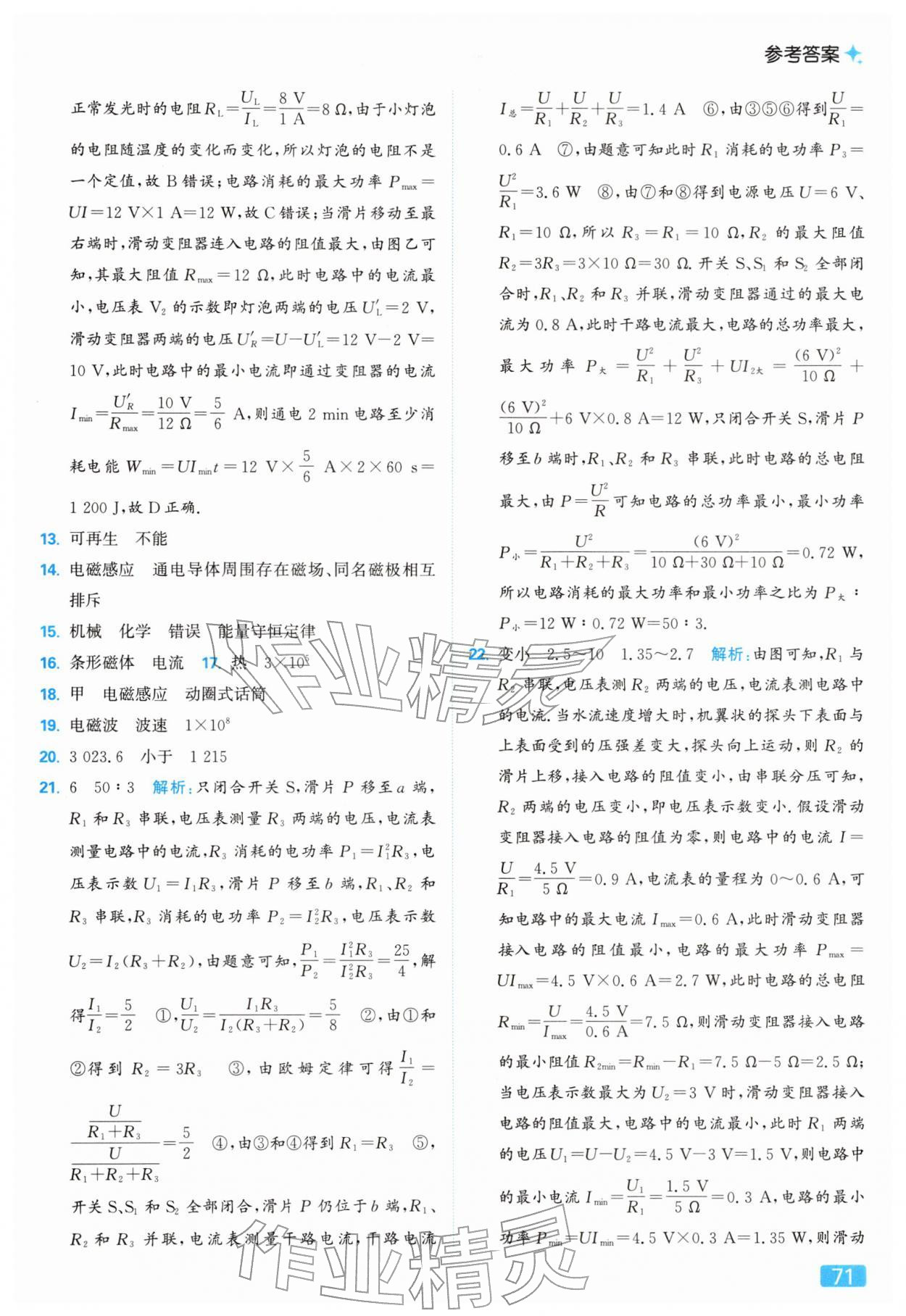 2026年亮点给力提优课时作业本九年级物理下册苏科版参考答案第71页