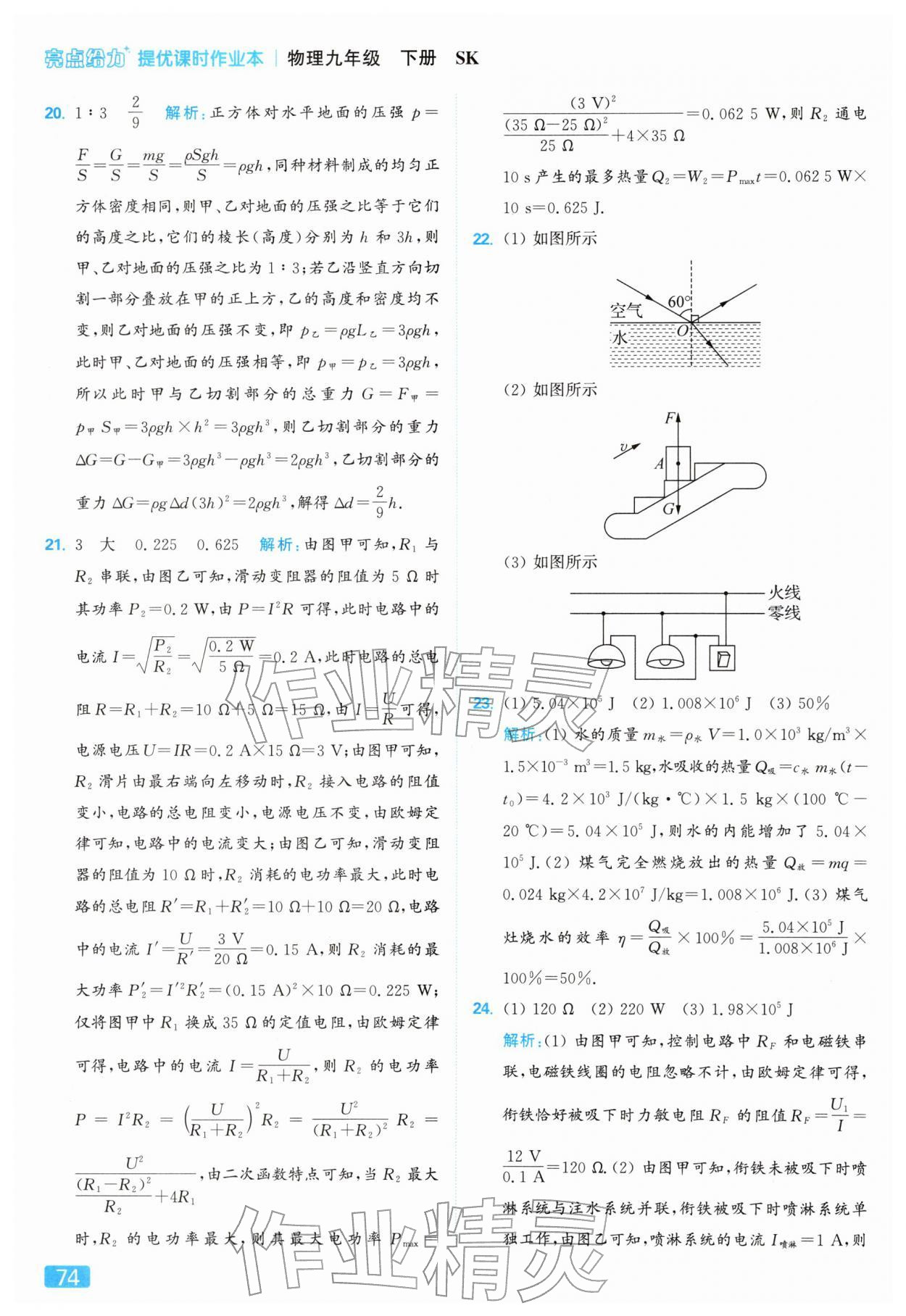 2026年亮点给力提优课时作业本九年级物理下册苏科版参考答案第74页