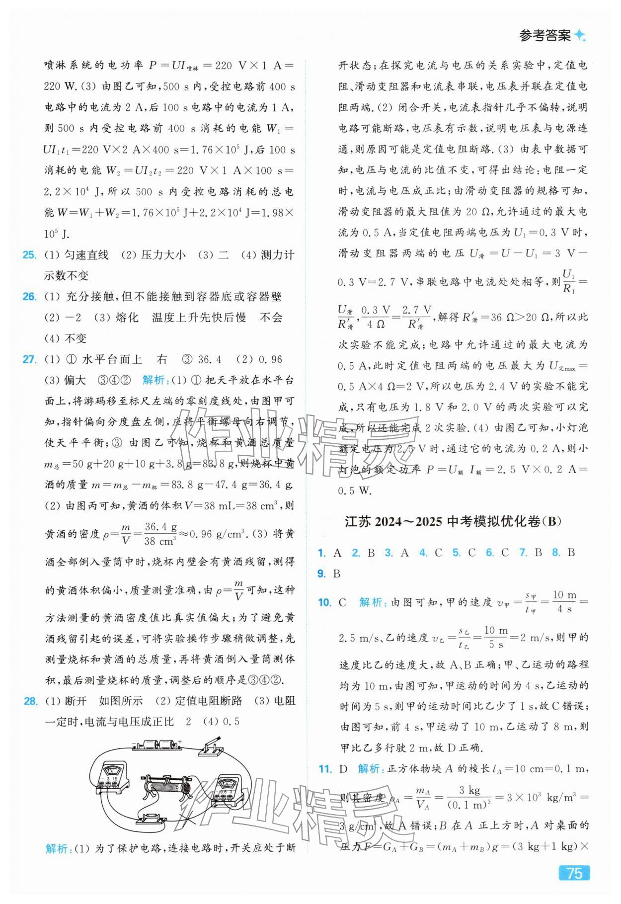 2026年亮点给力提优课时作业本九年级物理下册苏科版参考答案第75页
