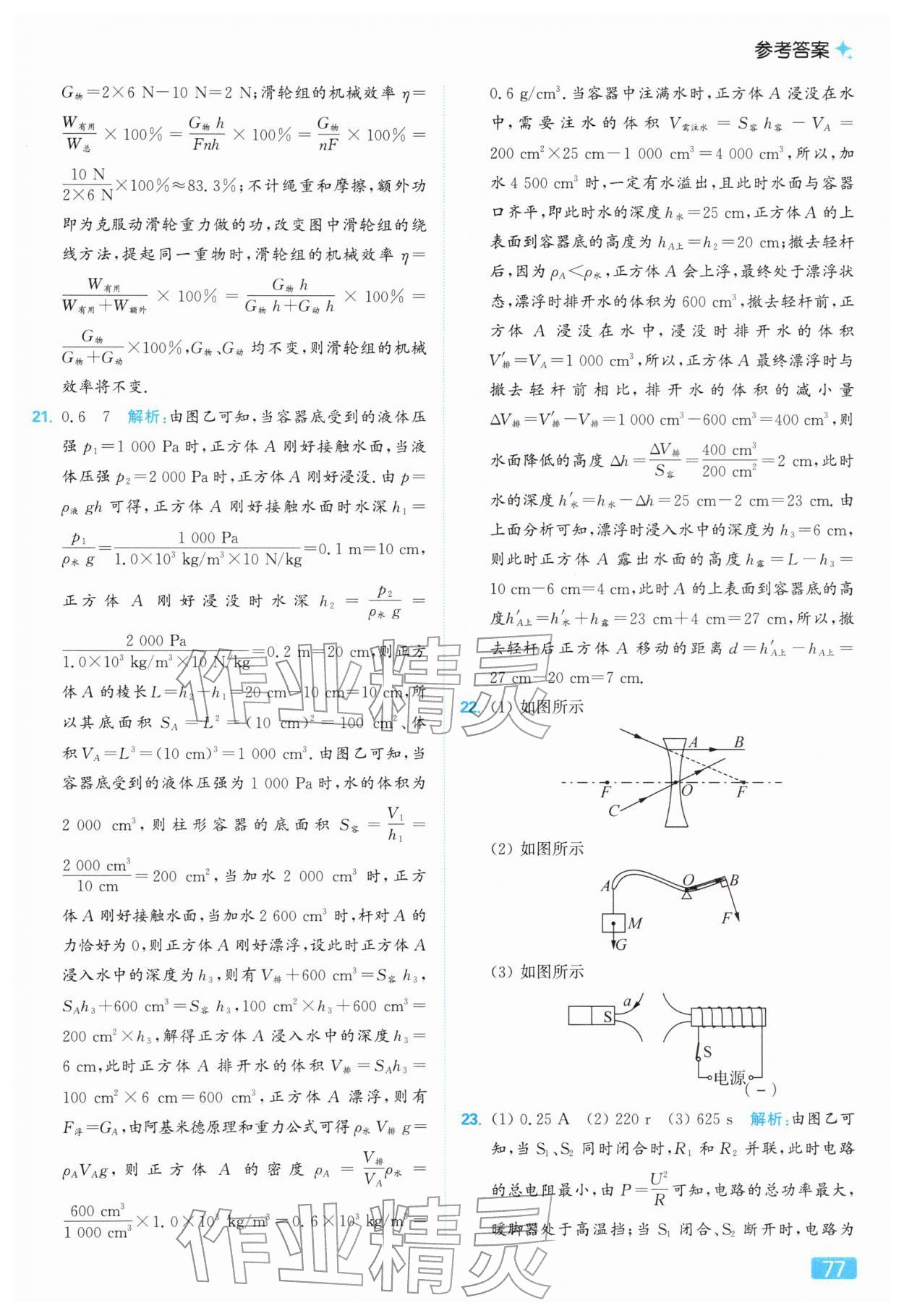 2026年亮点给力提优课时作业本九年级物理下册苏科版参考答案第77页