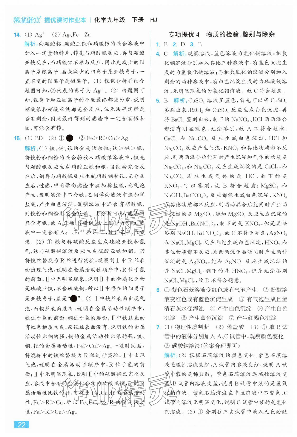 2026年亮点给力提优课时作业本九年级化学下册沪教版参考答案第22页