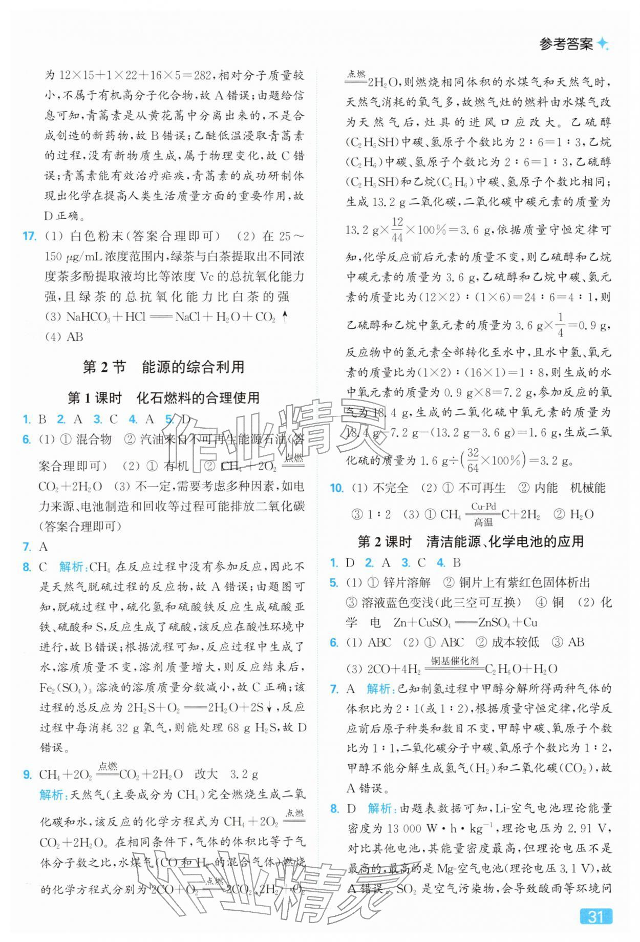 2026年亮点给力提优课时作业本九年级化学下册沪教版参考答案第31页