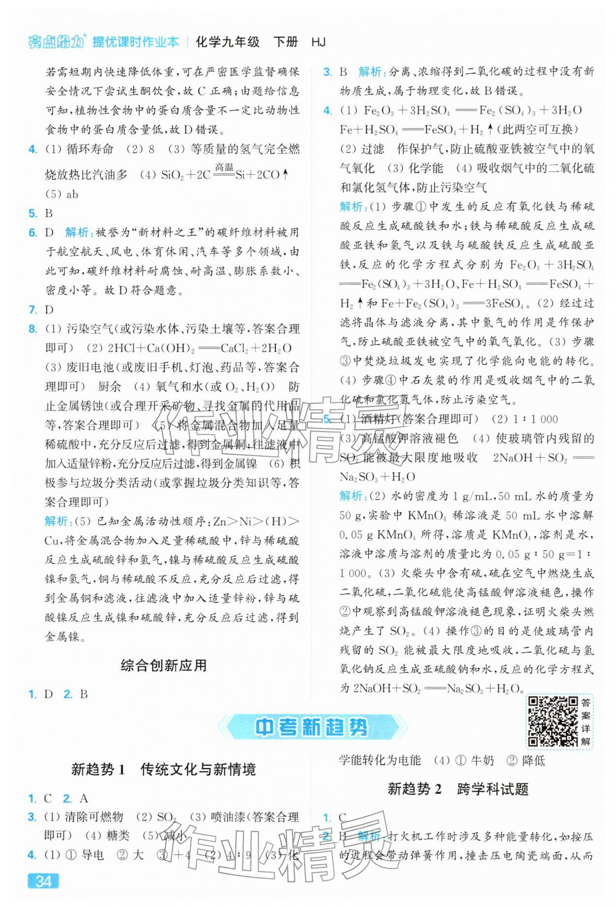 2026年亮点给力提优课时作业本九年级化学下册沪教版参考答案第34页