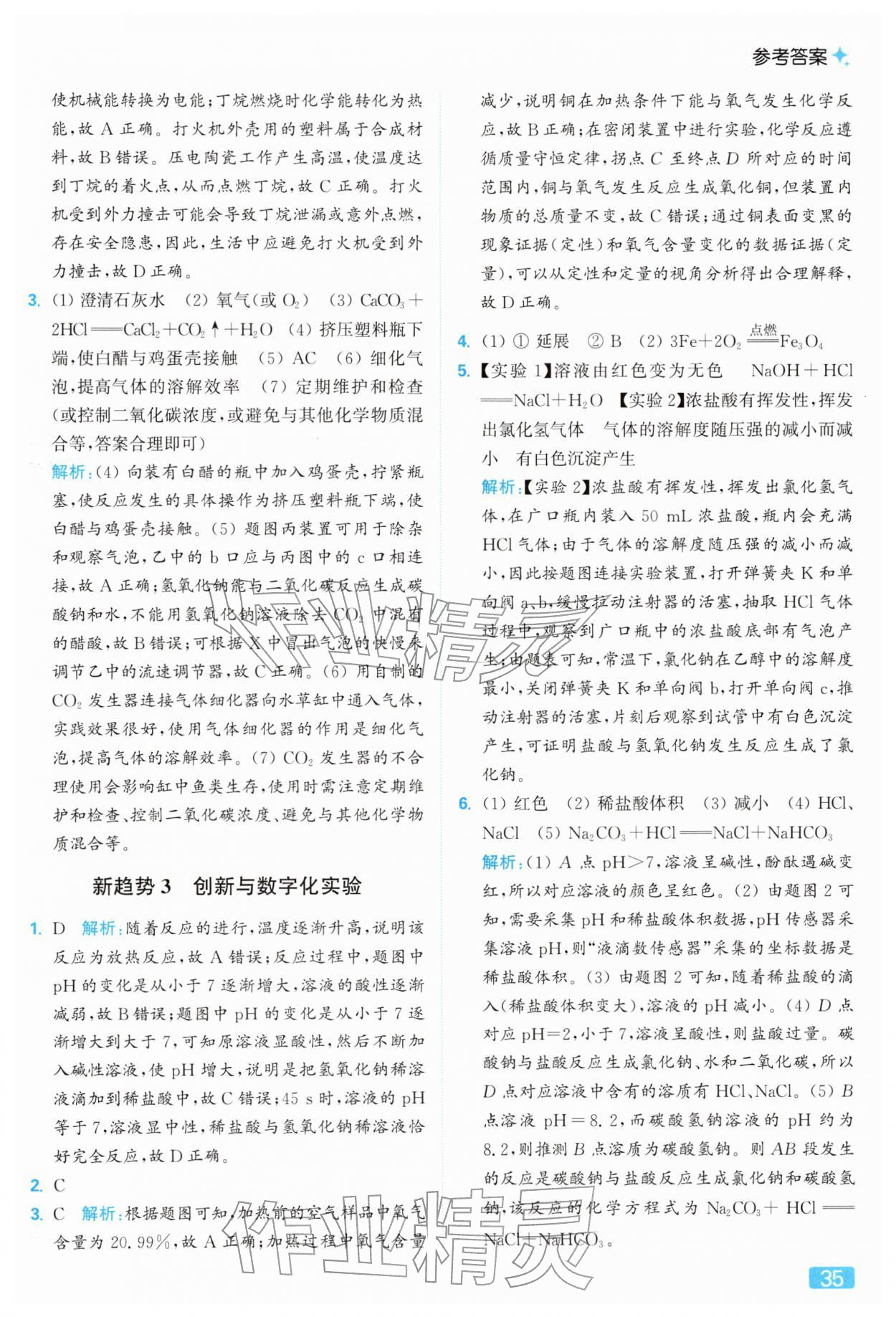 2026年亮点给力提优课时作业本九年级化学下册沪教版参考答案第35页