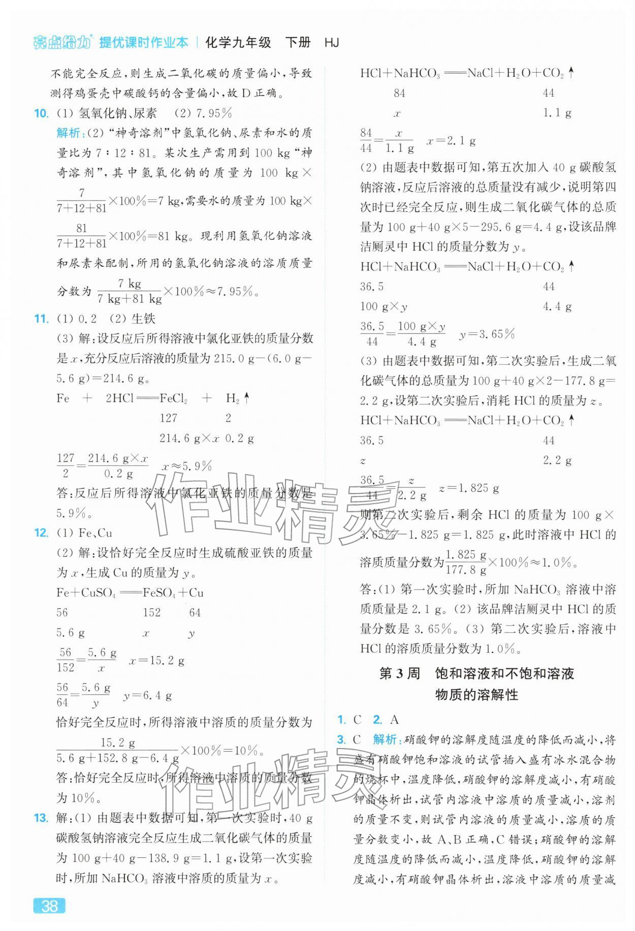 2026年亮点给力提优课时作业本九年级化学下册沪教版参考答案第38页