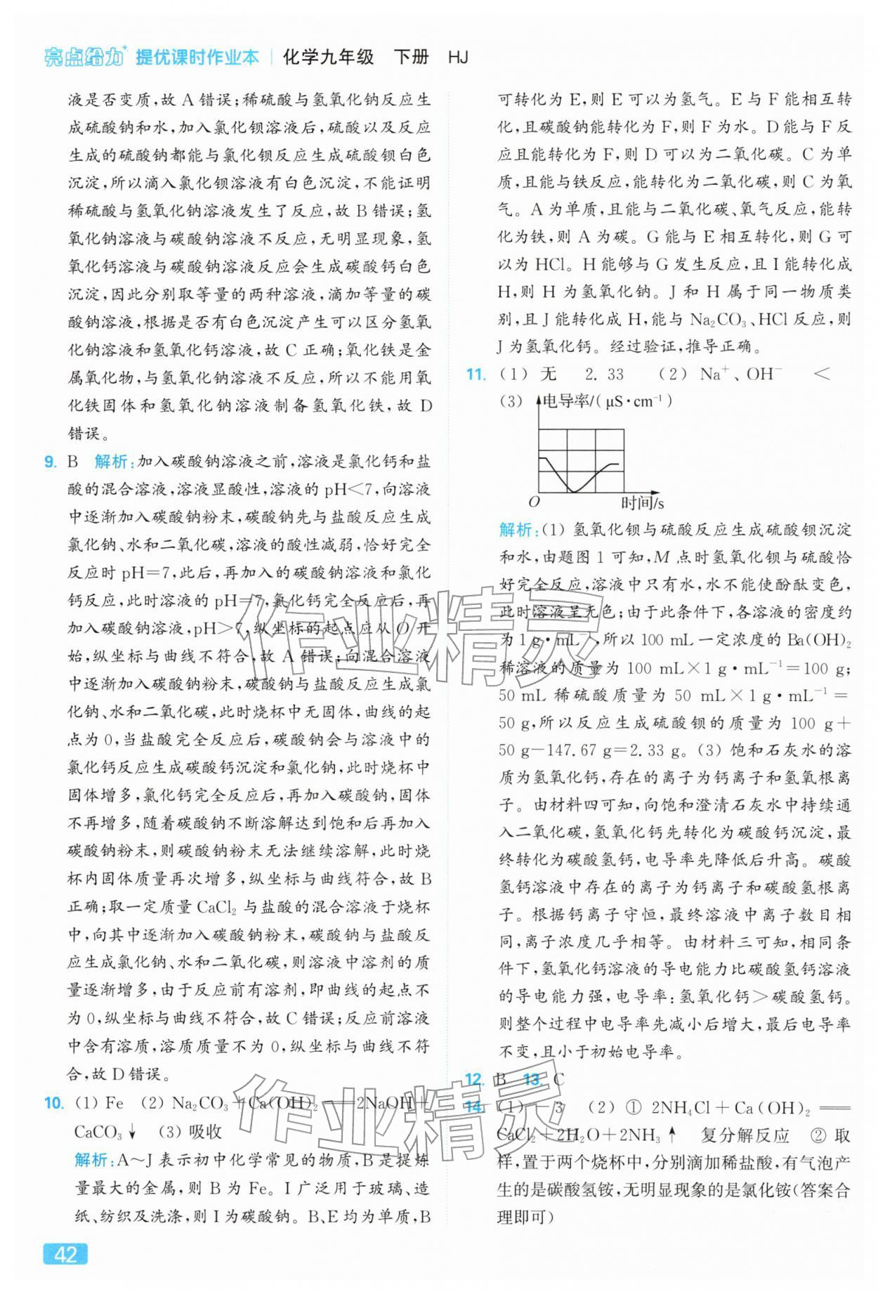 2026年亮点给力提优课时作业本九年级化学下册沪教版参考答案第42页