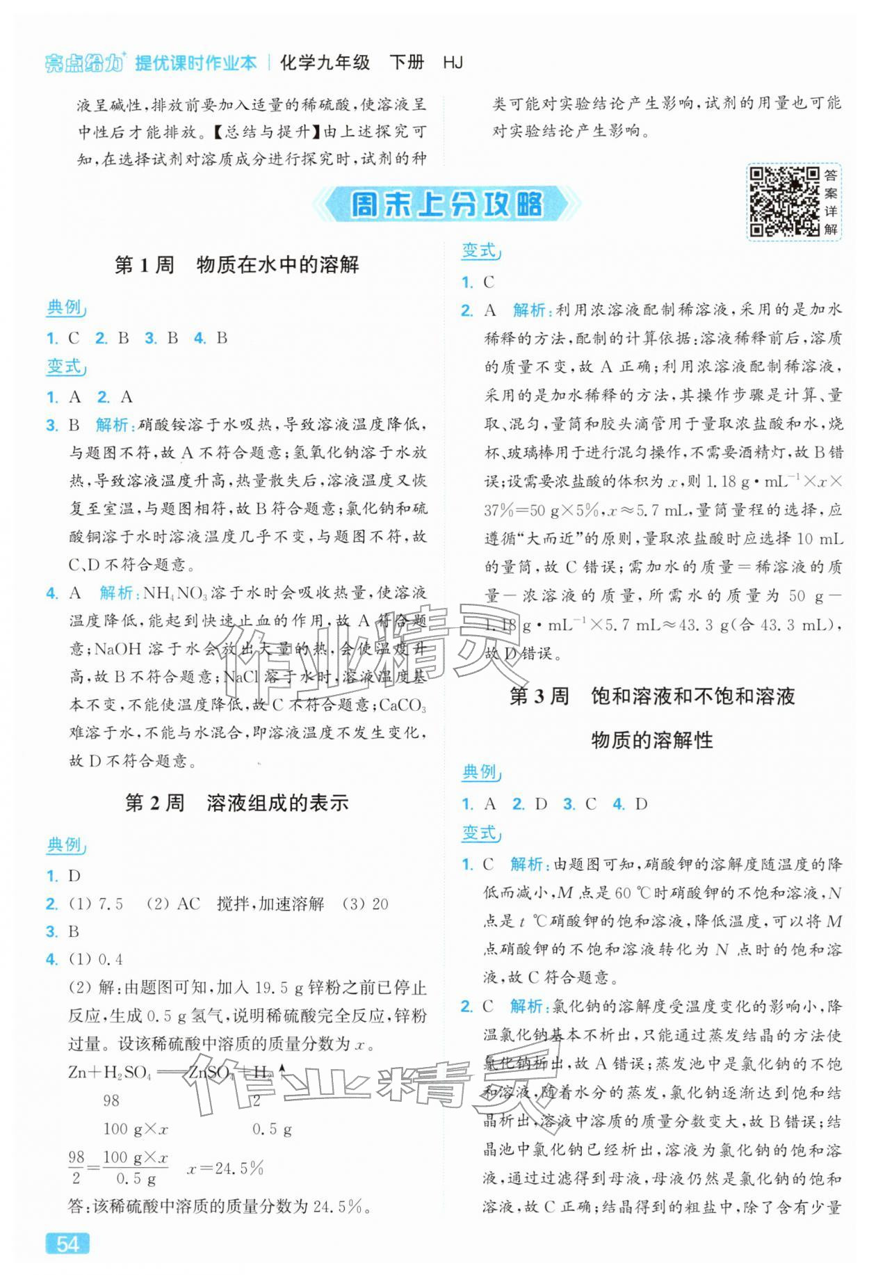 2026年亮点给力提优课时作业本九年级化学下册沪教版参考答案第54页