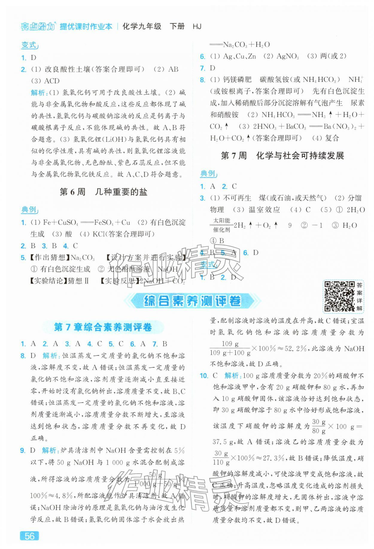 2026年亮点给力提优课时作业本九年级化学下册沪教版参考答案第56页