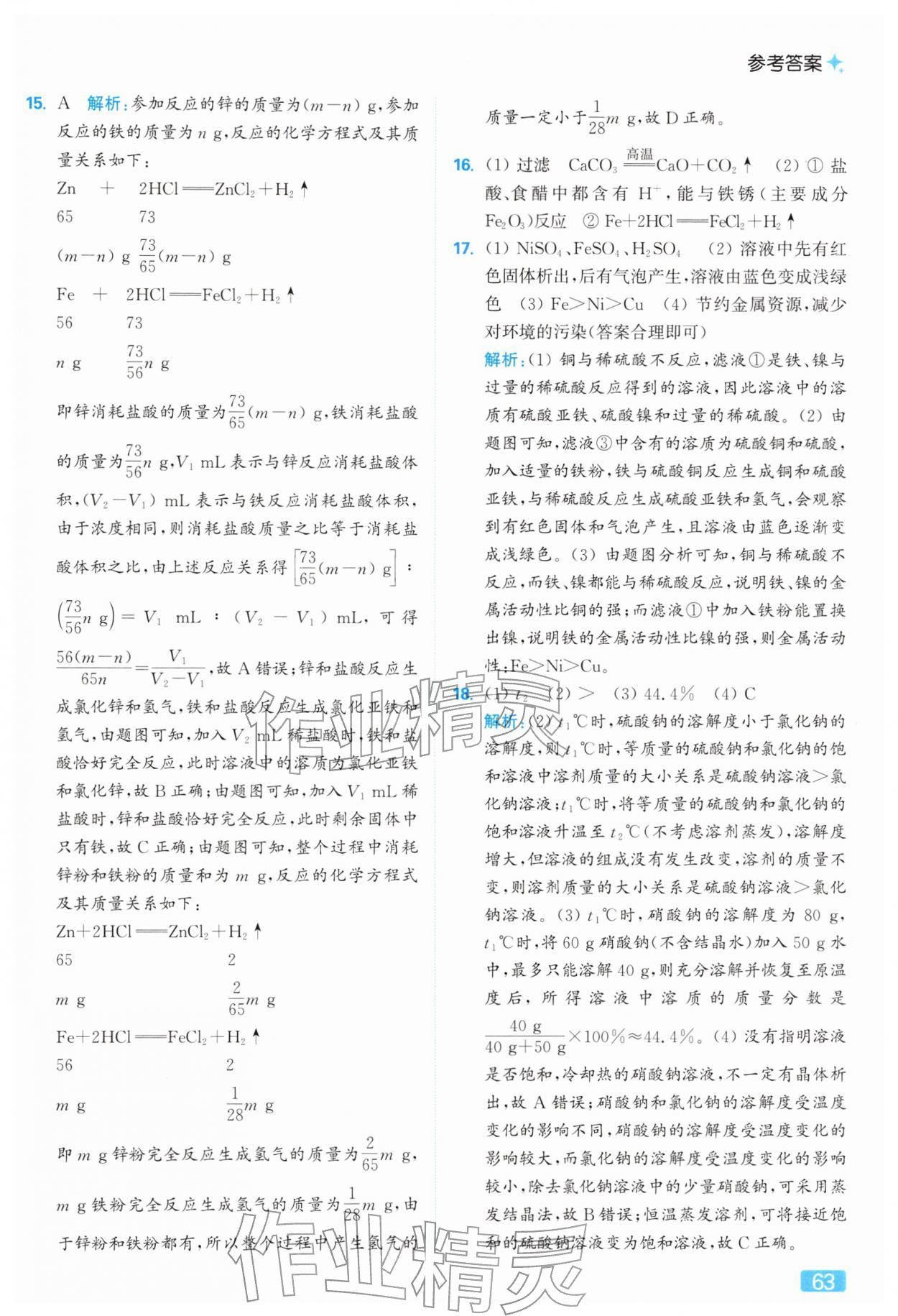 2026年亮点给力提优课时作业本九年级化学下册沪教版参考答案第63页