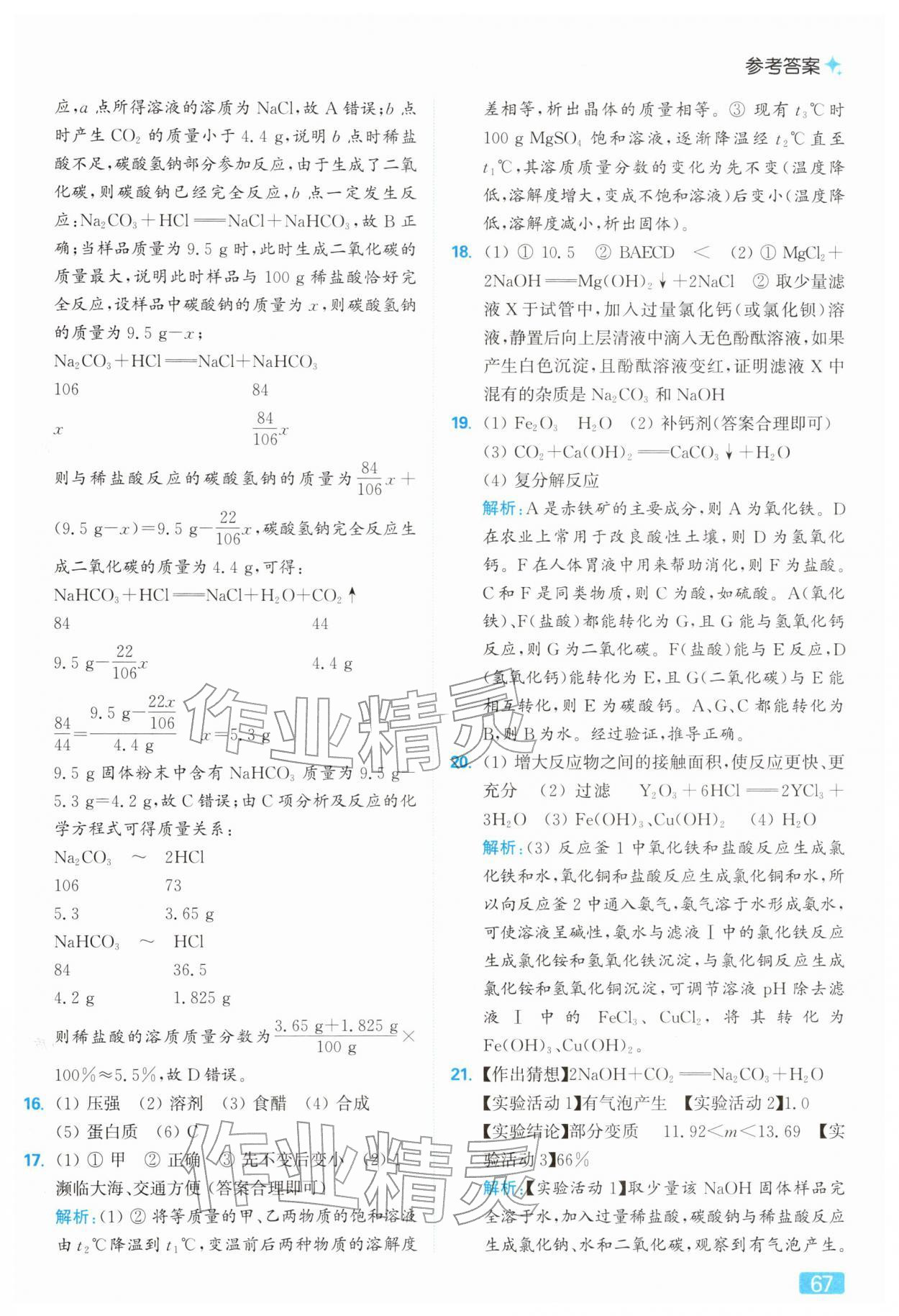 2026年亮点给力提优课时作业本九年级化学下册沪教版参考答案第67页