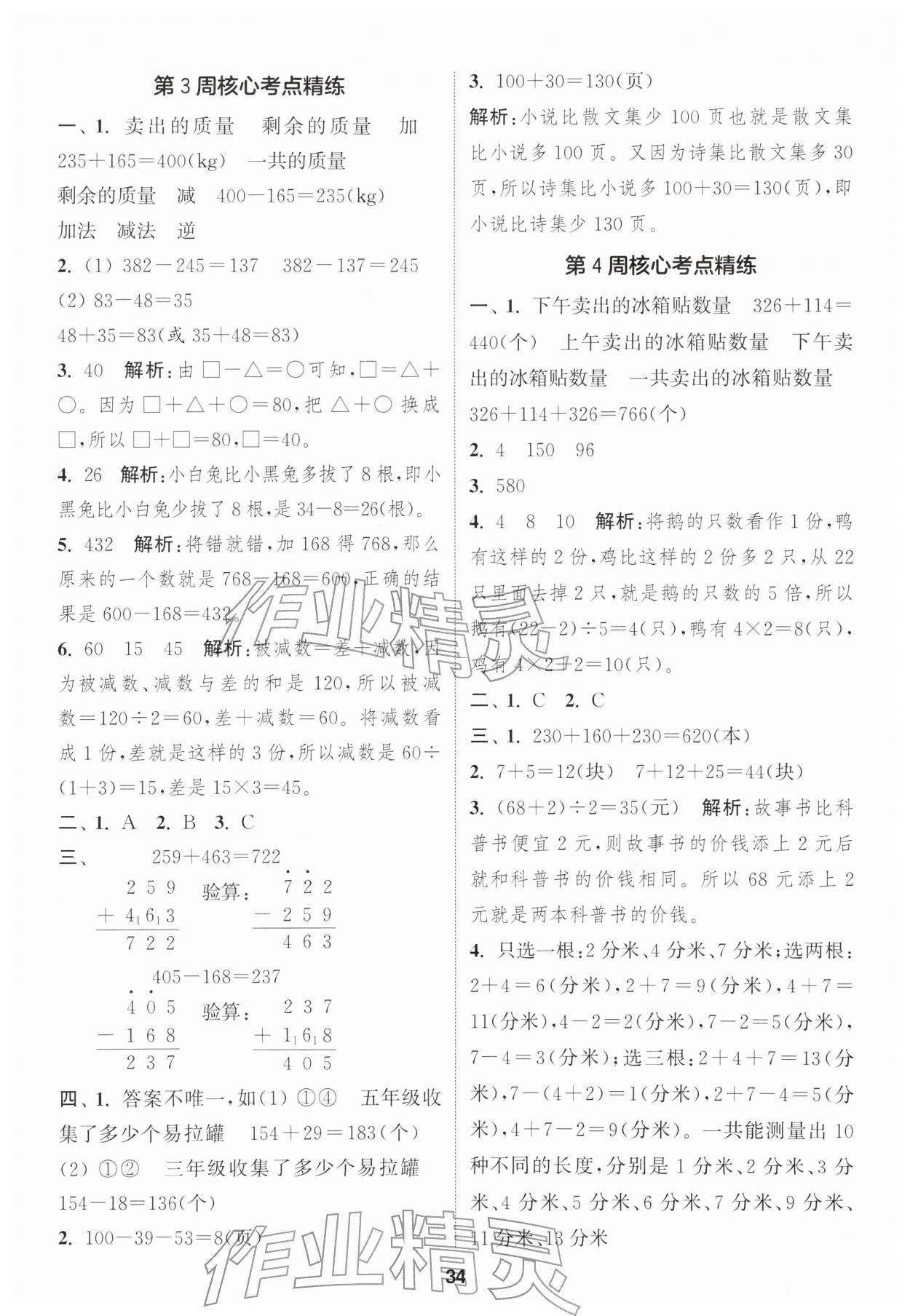 2026年通城学典课时作业本三年级数学下册苏教版江苏专版第34页