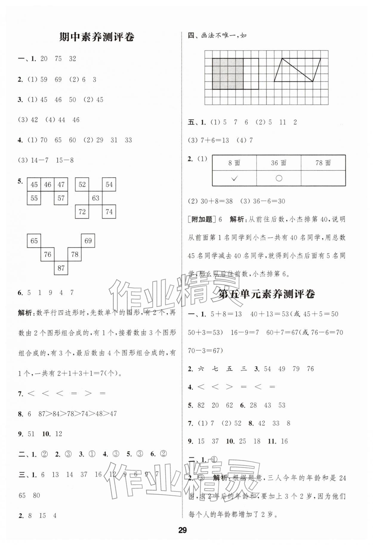2026年通城学典课时作业本一年级数学下册苏教版江苏专版第29页