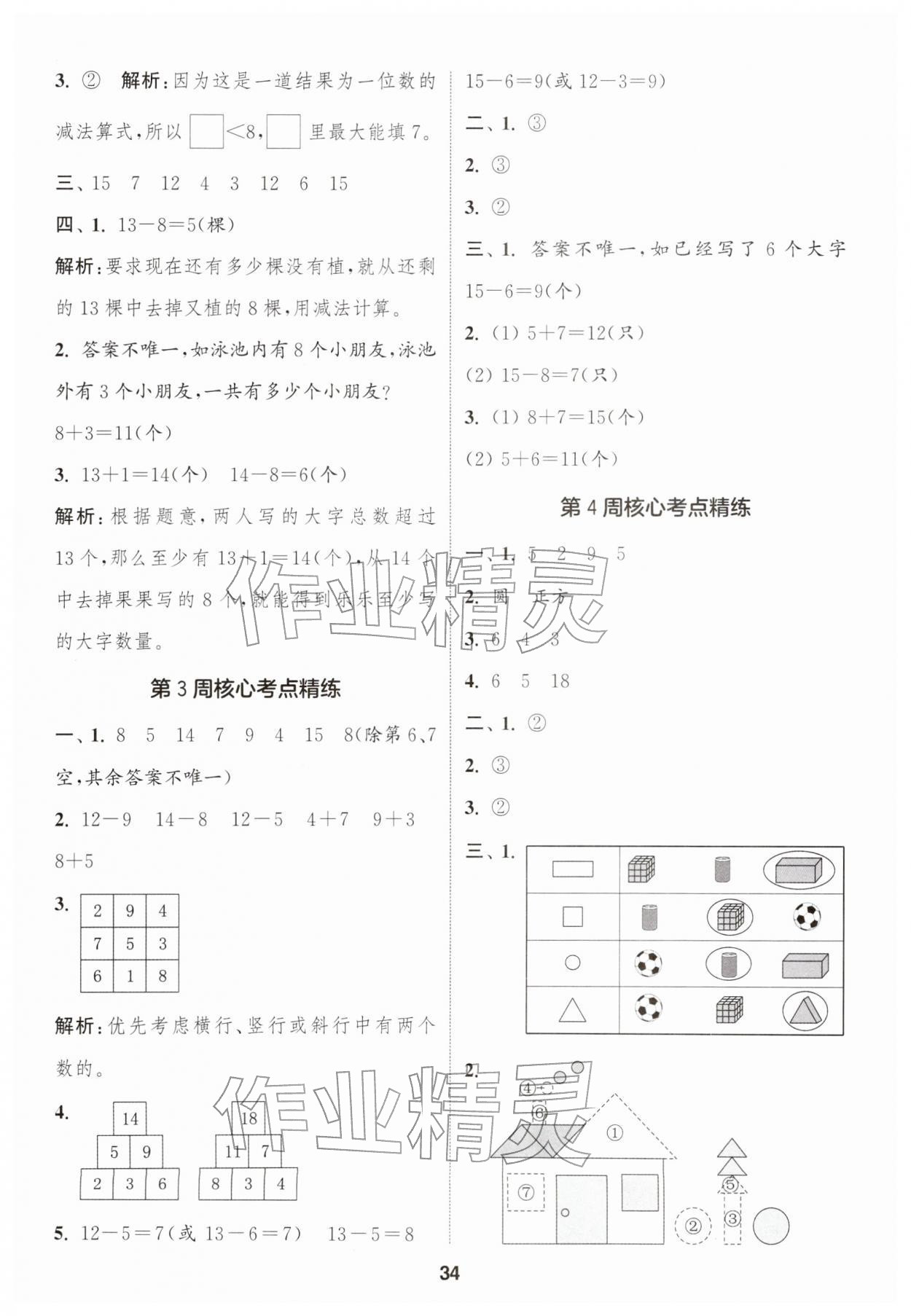 2026年通城学典课时作业本一年级数学下册苏教版江苏专版第34页
