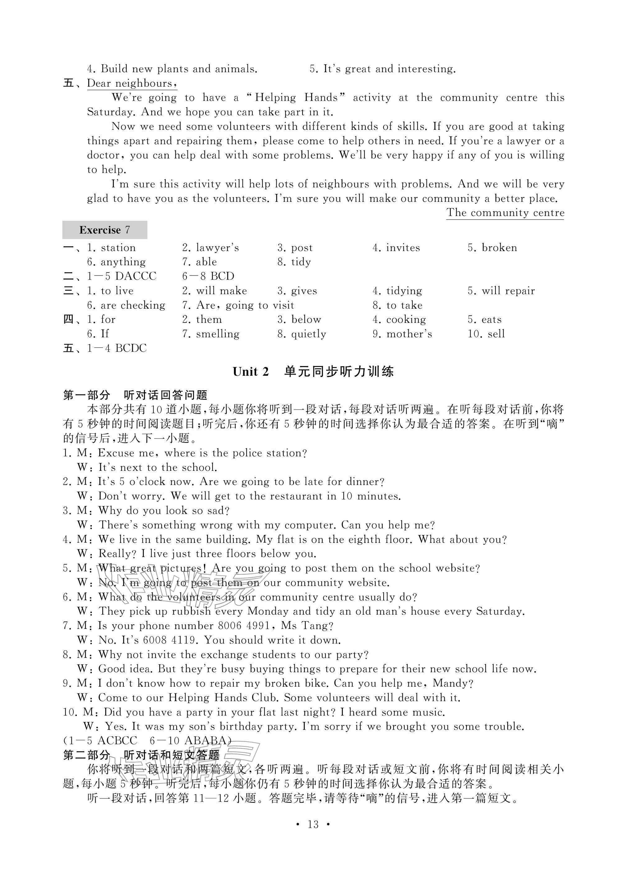 2026年综合素质随堂反馈七年级英语下册译林版苏州专版参考答案第13页