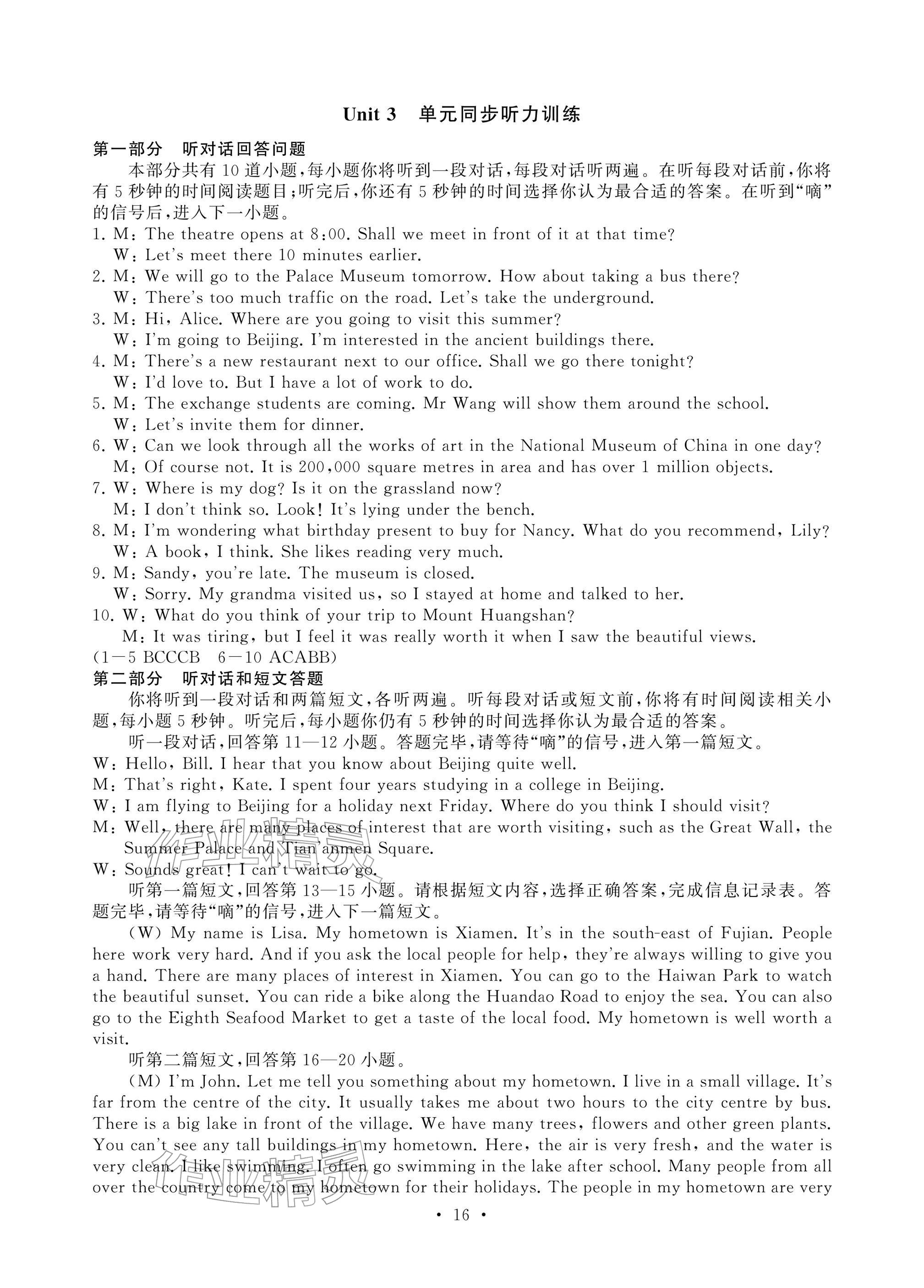 2026年综合素质随堂反馈七年级英语下册译林版苏州专版参考答案第16页