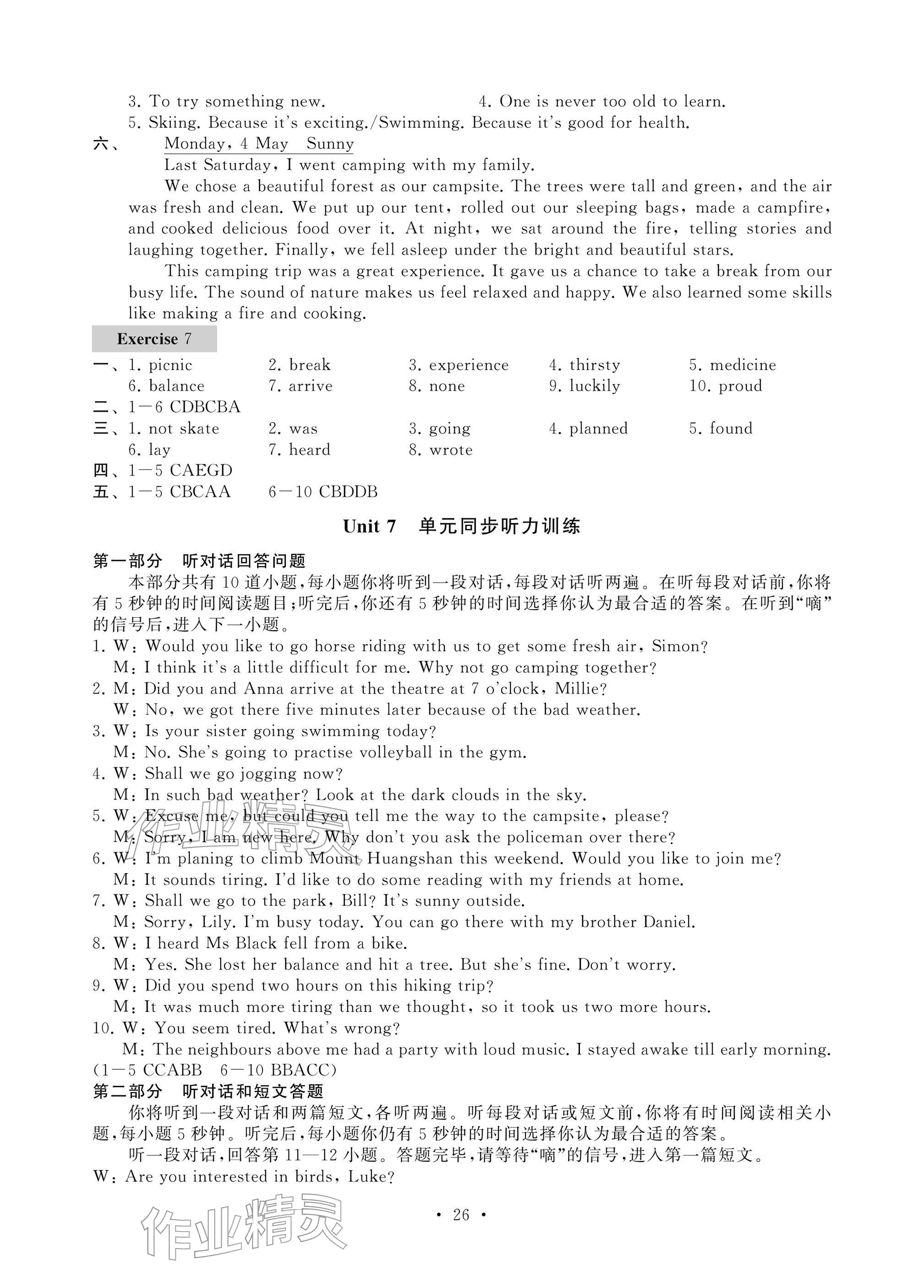 2026年综合素质随堂反馈七年级英语下册译林版苏州专版参考答案第26页