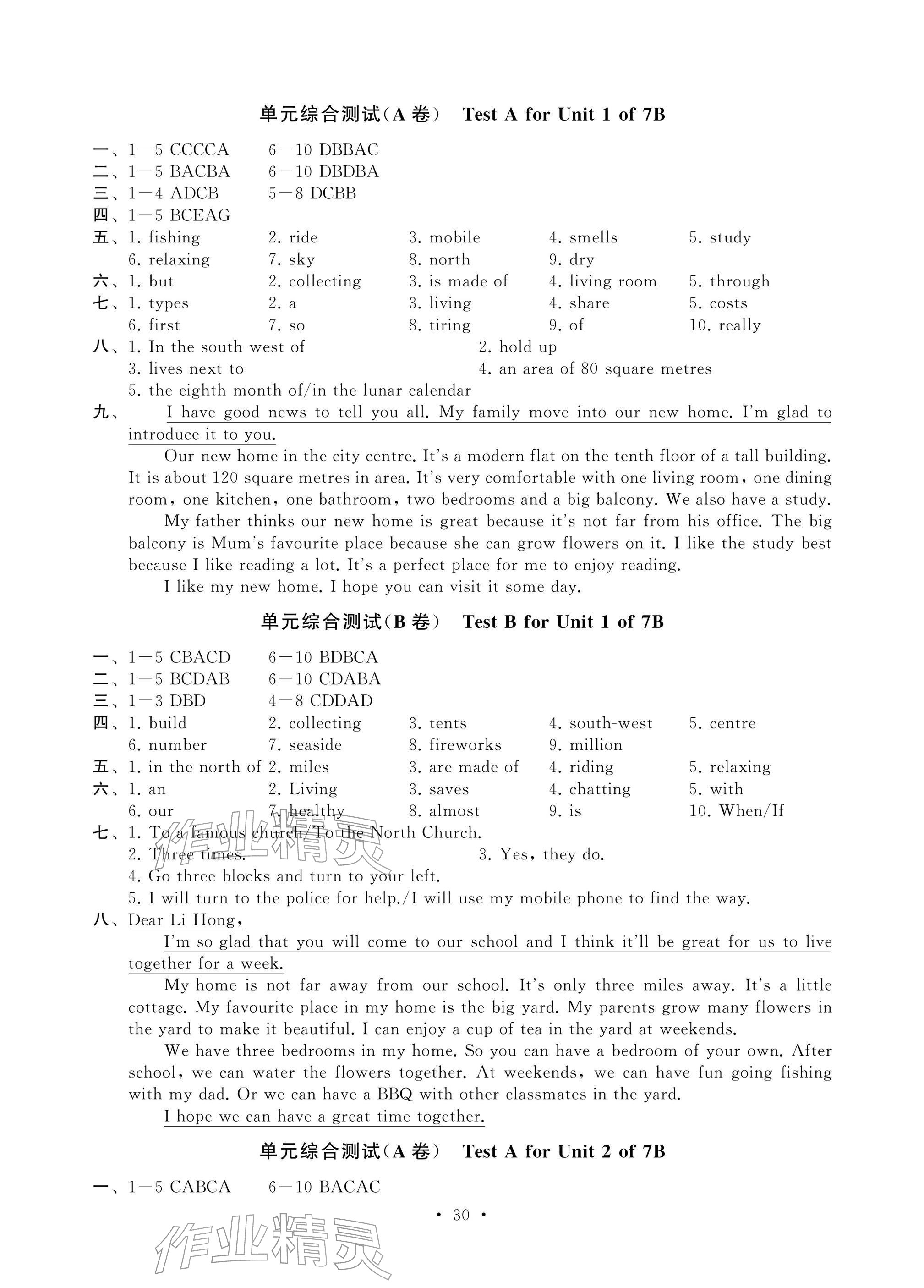 2026年综合素质随堂反馈七年级英语下册译林版苏州专版参考答案第30页