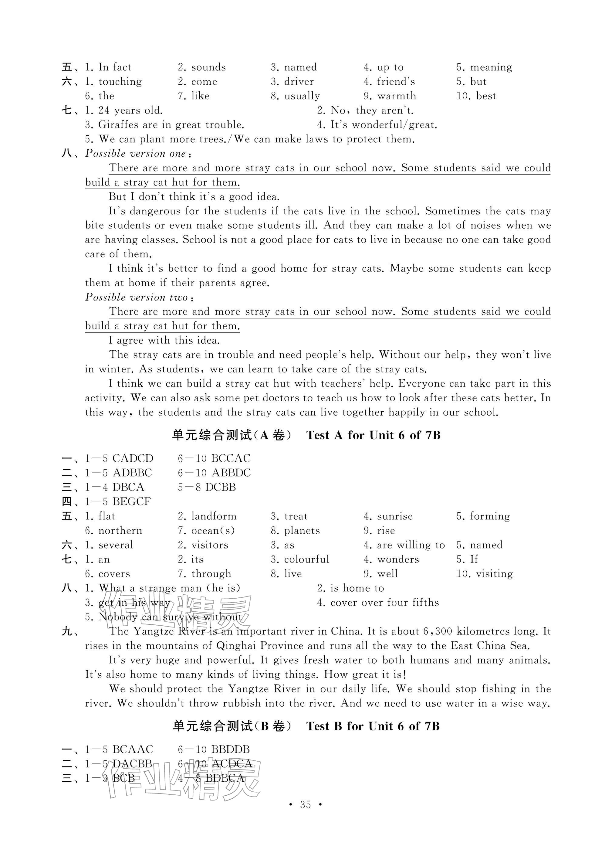 2026年综合素质随堂反馈七年级英语下册译林版苏州专版参考答案第35页