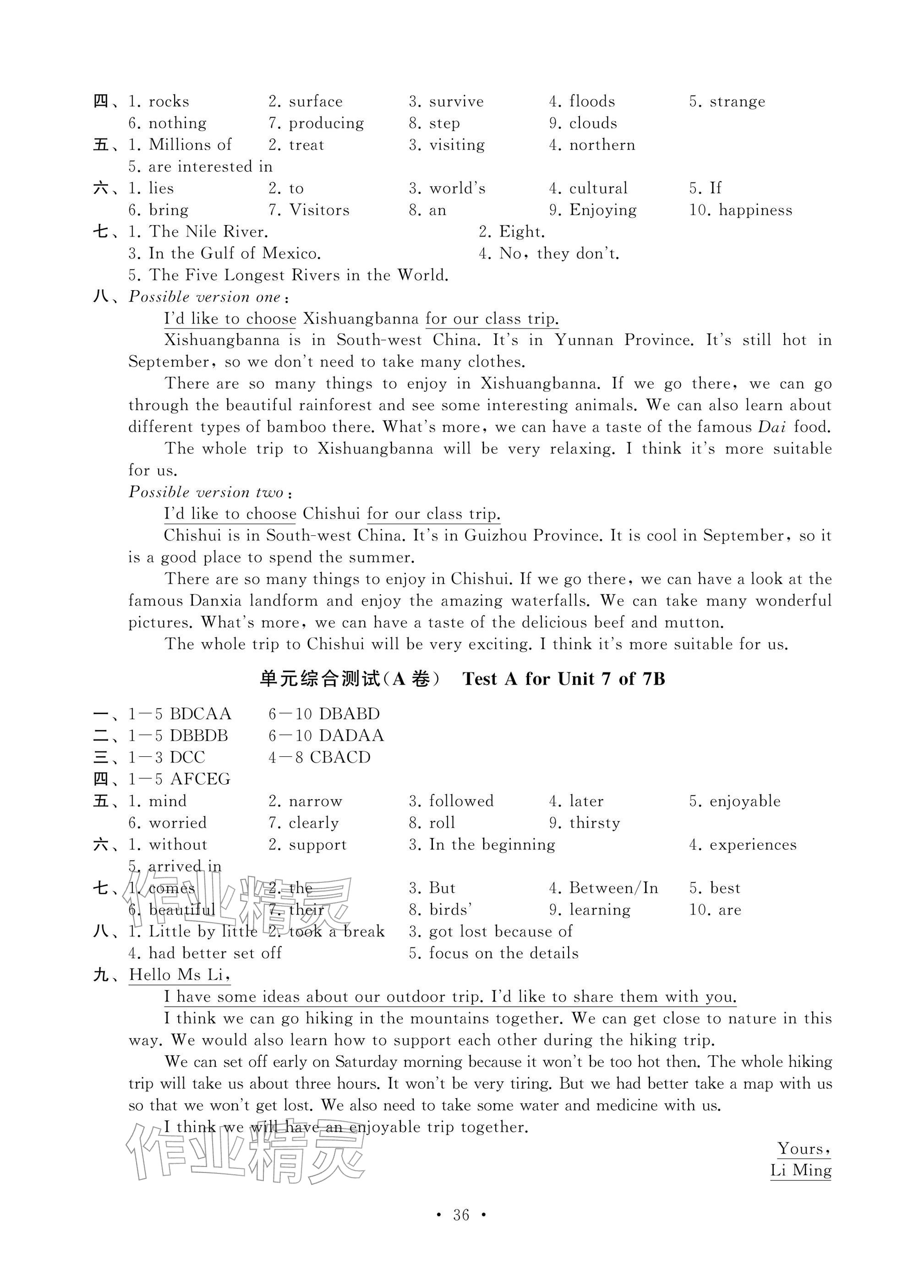 2026年综合素质随堂反馈七年级英语下册译林版苏州专版参考答案第36页