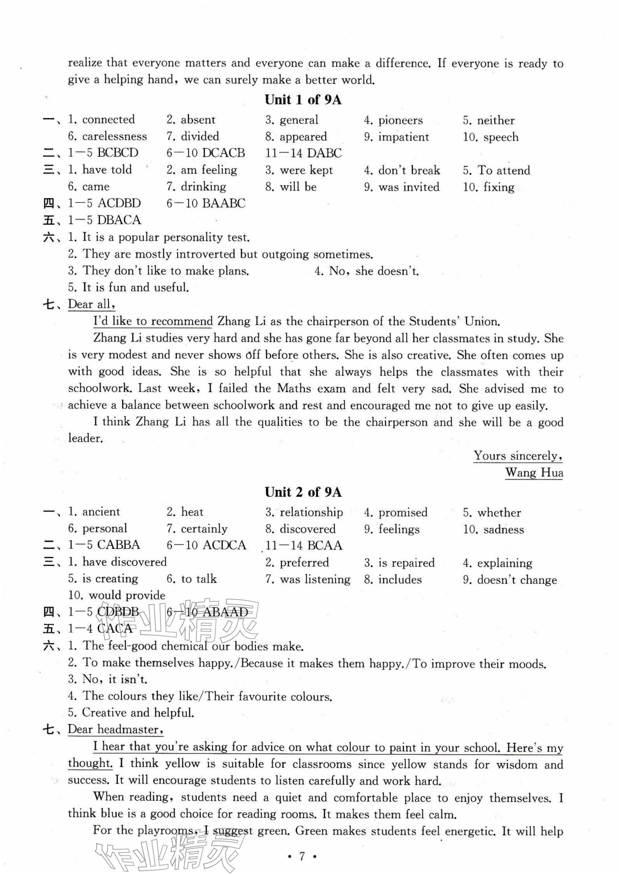 2026年综合素质随堂反馈九年级英语下册译林版无锡专版参考答案第7页