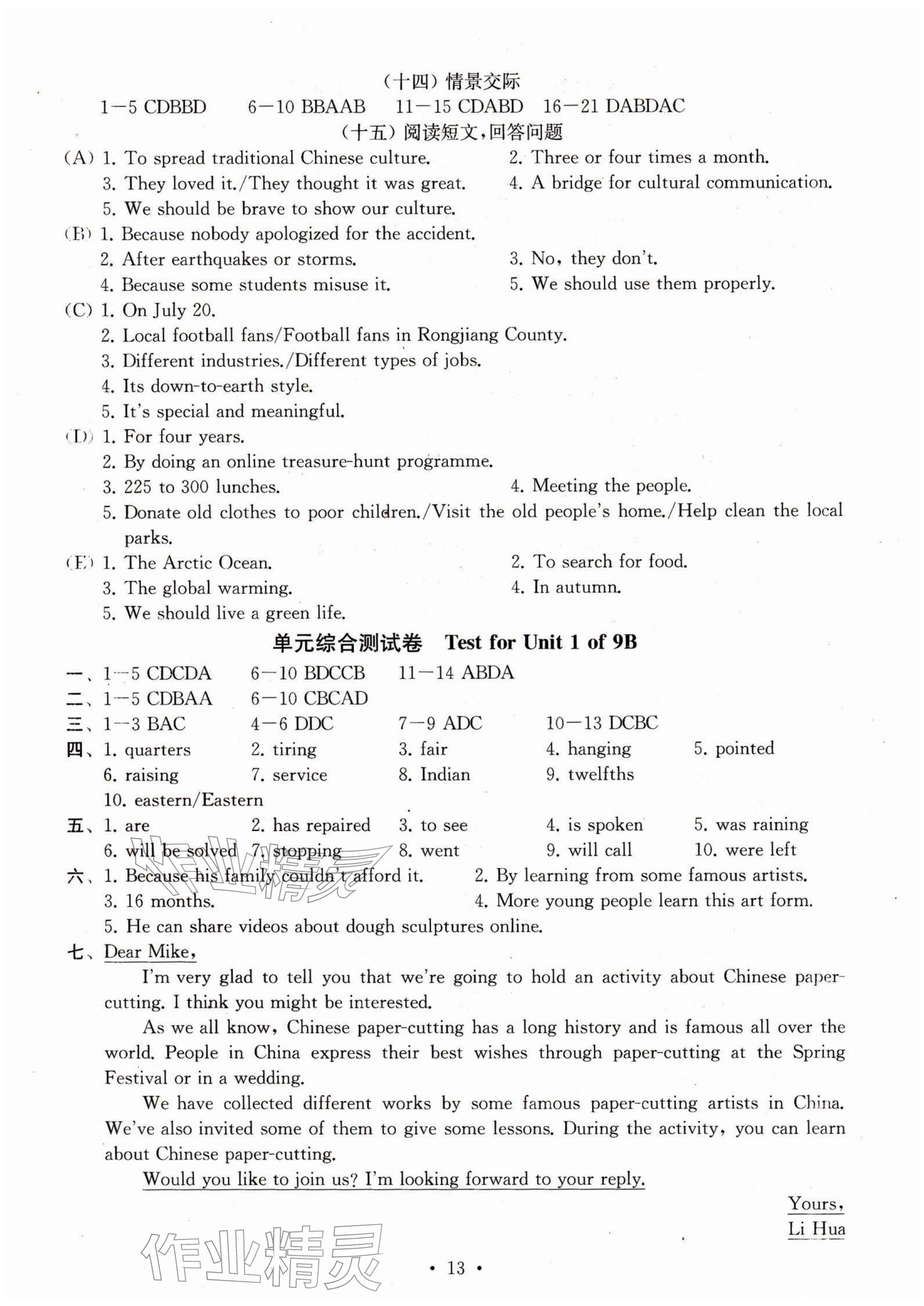 2026年综合素质随堂反馈九年级英语下册译林版无锡专版参考答案第13页