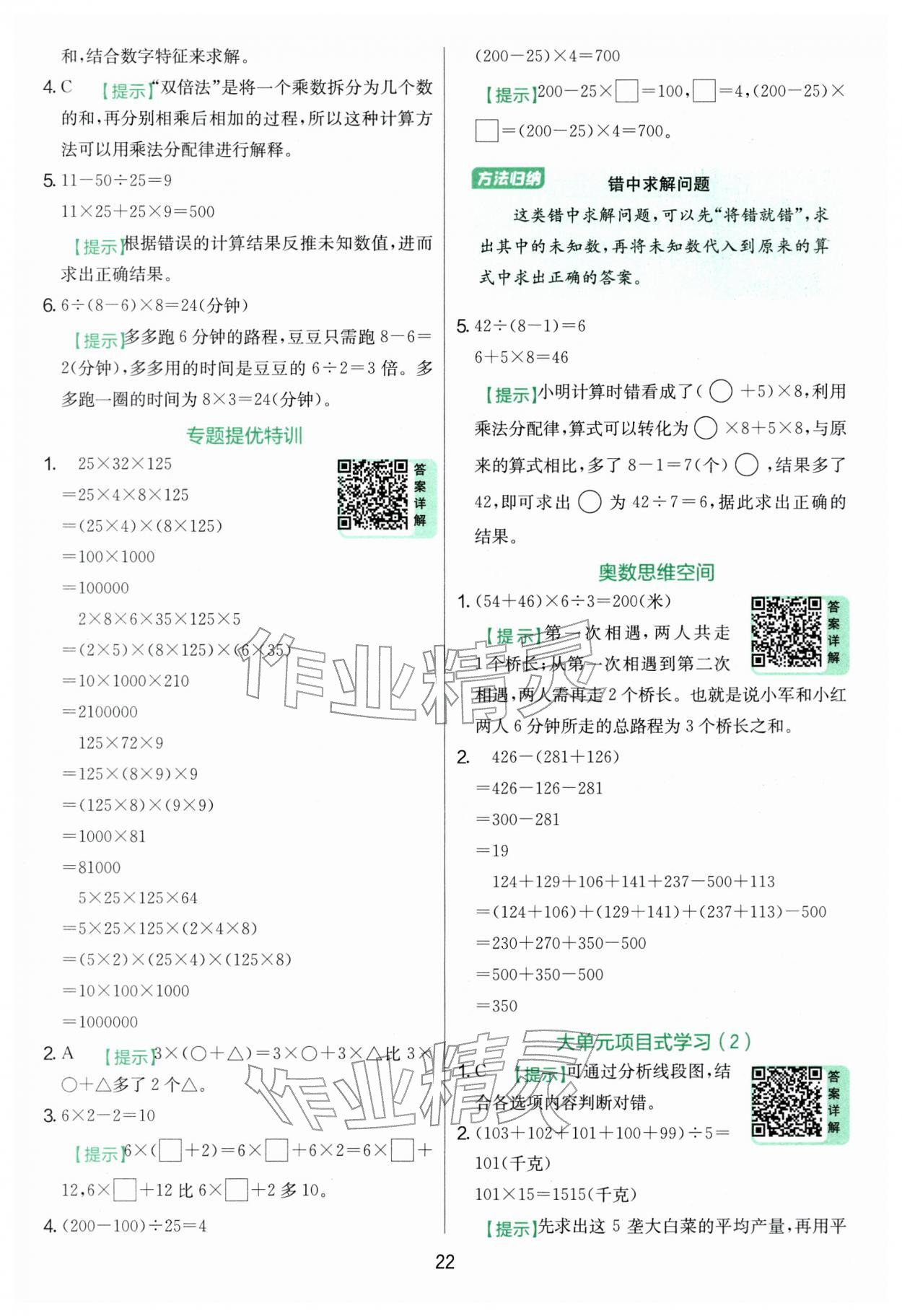 2026年实验班提优训练四年级数学下册苏教版参考答案第22页