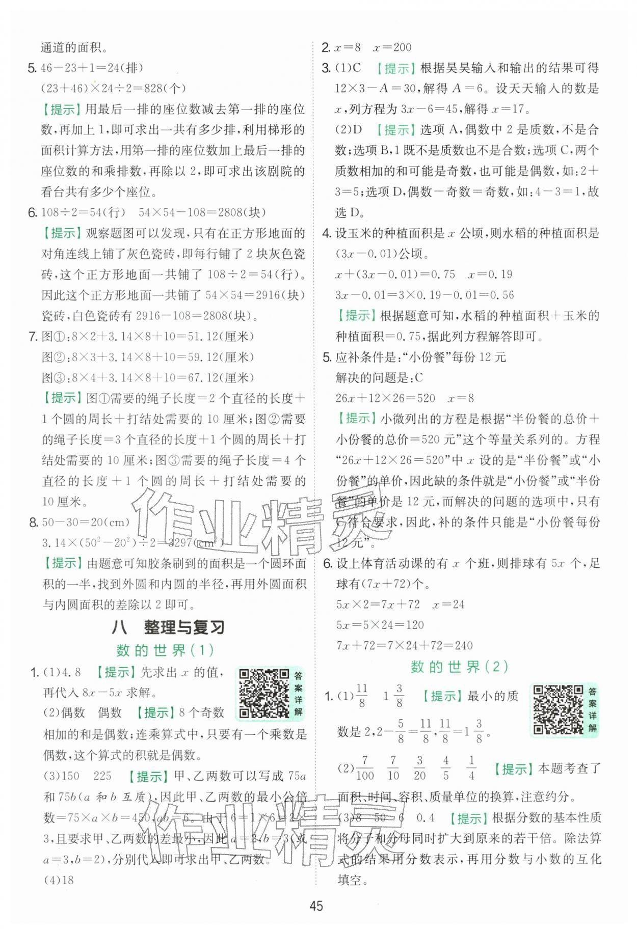 2026年实验班提优训练五年级数学下册苏教版参考答案第45页